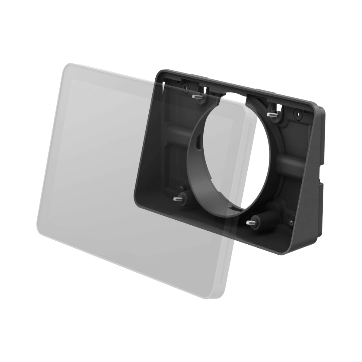 The mount is designed for easy installation on desks, walls, or meeting room entrances, allowing flexible placement of the Tap Scheduler. The included reversible interface lets you adjust the orientation to suit your space and viewing needs. All mounting hardware is provided, so setup is quick and requires minimal tools, making it suitable for IT teams or office managers handling meeting room technology.