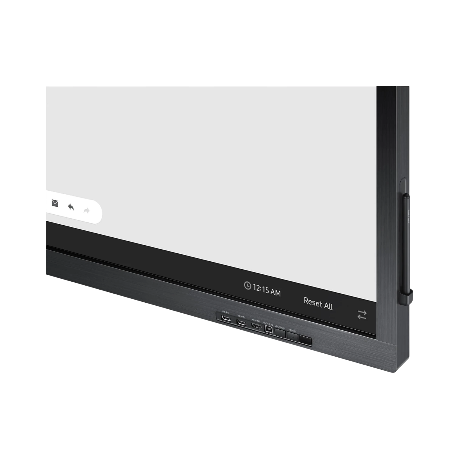 The Samsung QB75N-W is a 75-inch interactive touchscreen display designed for conference rooms, classrooms, and training spaces. It features a 4K UHD resolution of 3840 × 2160 pixels combined with a smooth 120 Hz refresh rate, delivering crisp images and fluid motion for presentations and video content. The infrared touch technology supports up to four simultaneous touch points, allowing multiple users to interact with the screen at once using the included passive pen for natural writing and drawing.