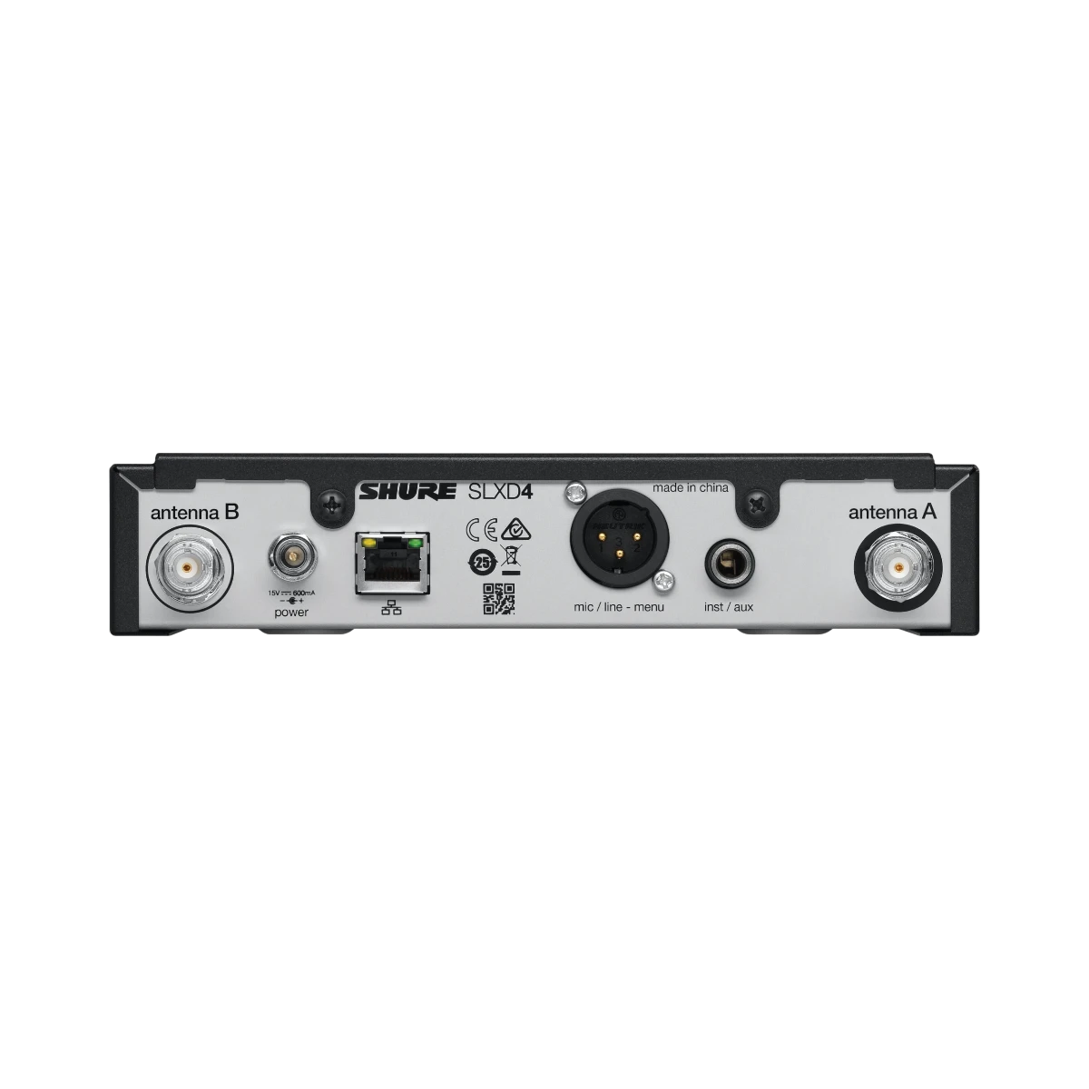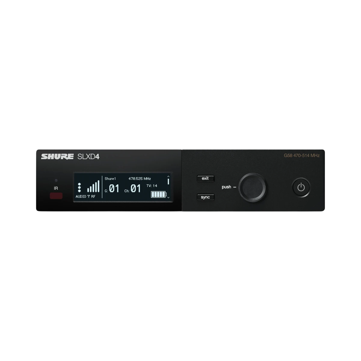 - SLXD4 receiver features a rugged design with an intuitive LCD display and detachable antennas for flexible placement