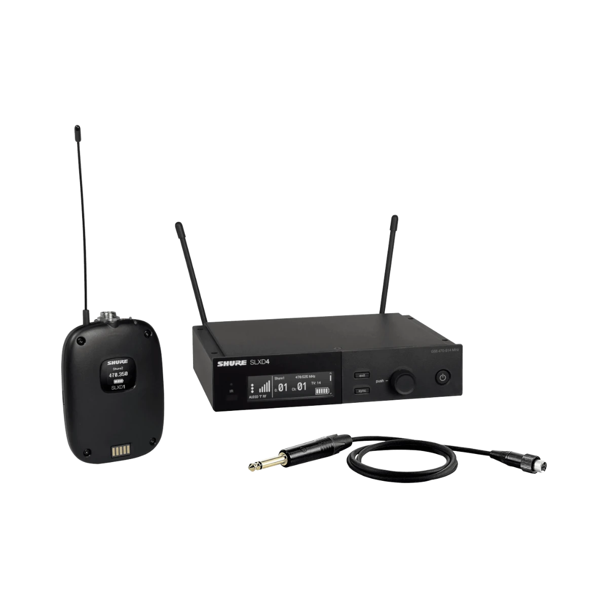 - Included components: SLXD4 receiver, SLXD1 bodypack transmitter, WA305 instrument cable