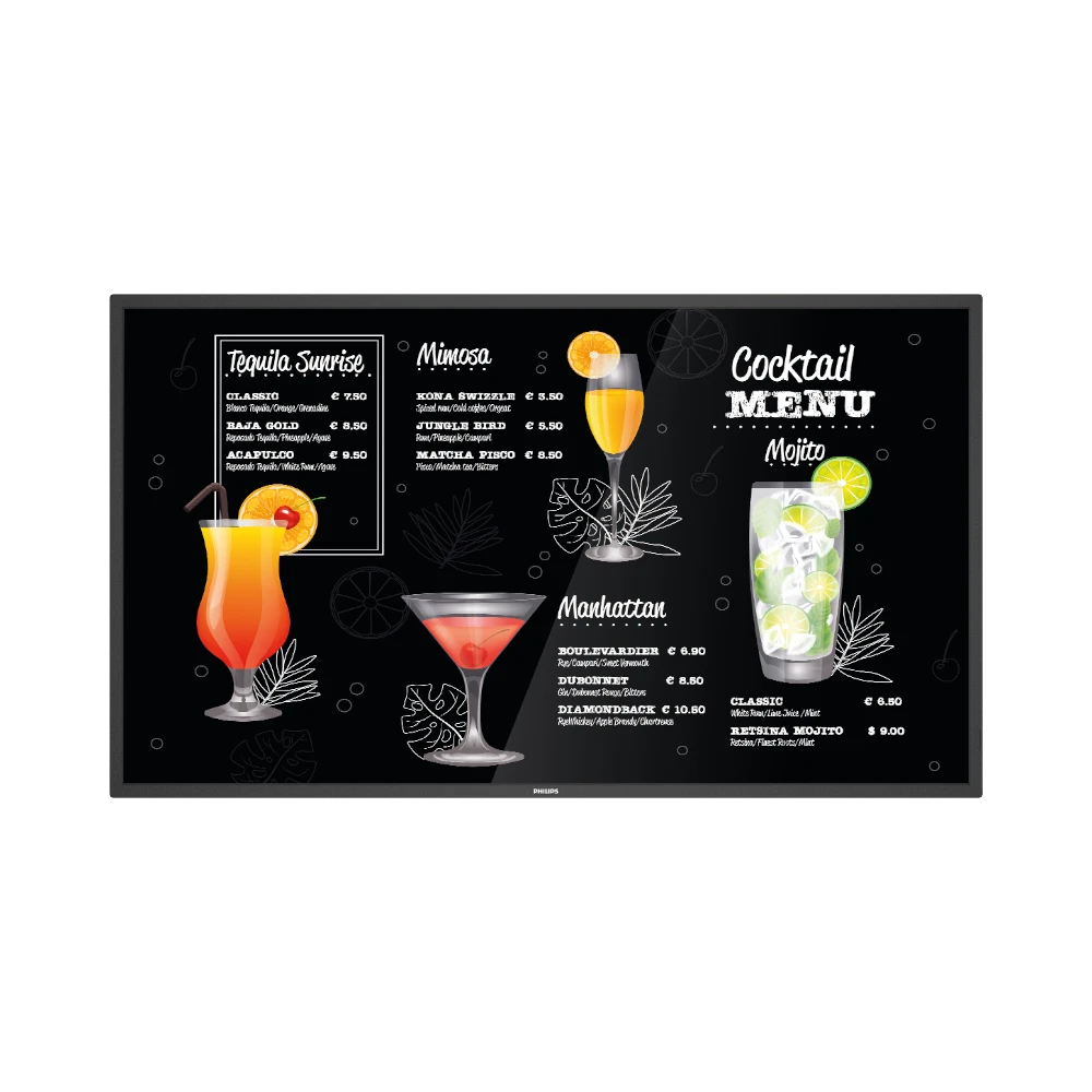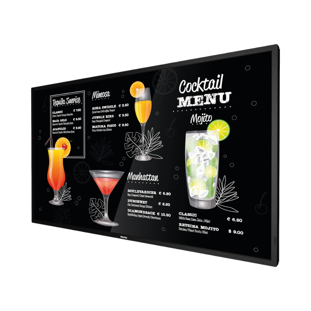 The Philips 43BDL3117P/00 fits well in environments that demand high-quality, reliable digital signage. Retail stores benefit from its bright and clear images that attract customer attention, while transportation hubs can rely on its wide viewing angles and continuous operation for passenger information displays. Food service locations gain from its integrated audio and flexible orientation options. Additionally, its precise image calibration makes it a strong choice for medical image review and other professional applications requiring accurate visuals.
