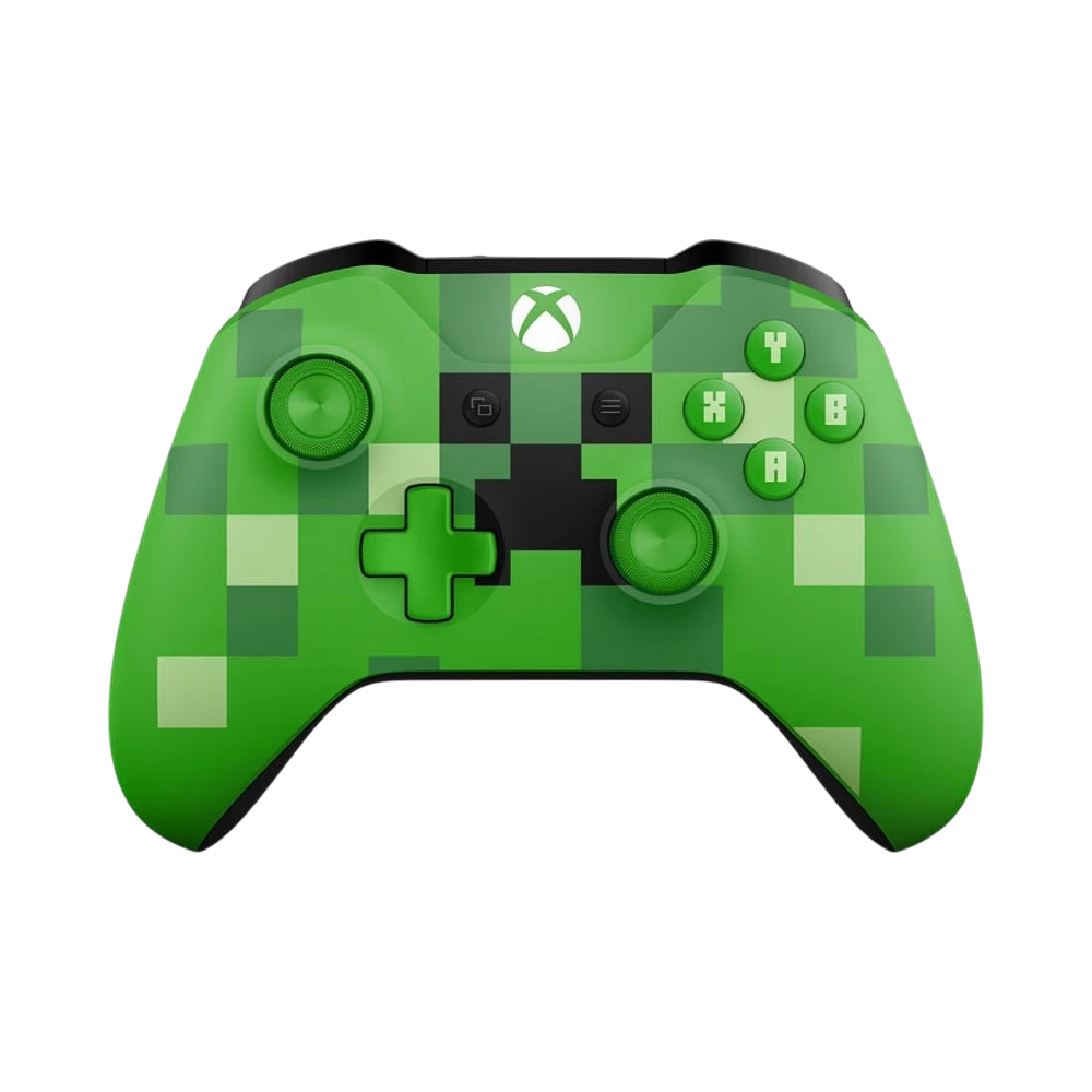 This bundle also includes the full Minecraft game and the Redstone Pack, offering immediate access to creative building and exploration. The redesigned Creeper wireless controller features textured grips for improved comfort and control, and it connects via Bluetooth to Windows 10 devices, extending its usability beyond the console.