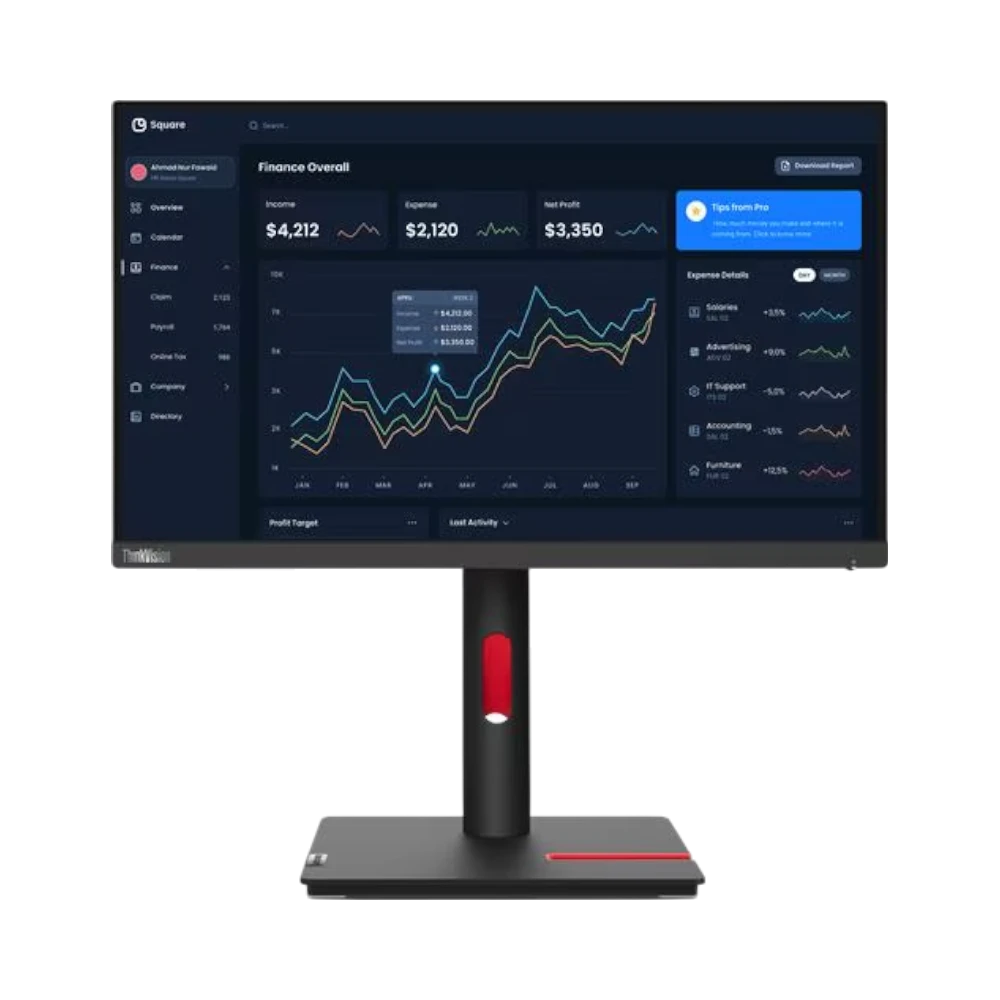 The ThinkVision T22i-30 fits well in office environments where multitasking and document management are common, thanks to its wide screen and sharp Full HD resolution. Its color accuracy and wide viewing angles also make it suitable for creative professionals who need reliable visuals. The ergonomic stand and eye comfort features support long hours of use, making it a strong choice for remote workers and multi-monitor workstations alike.