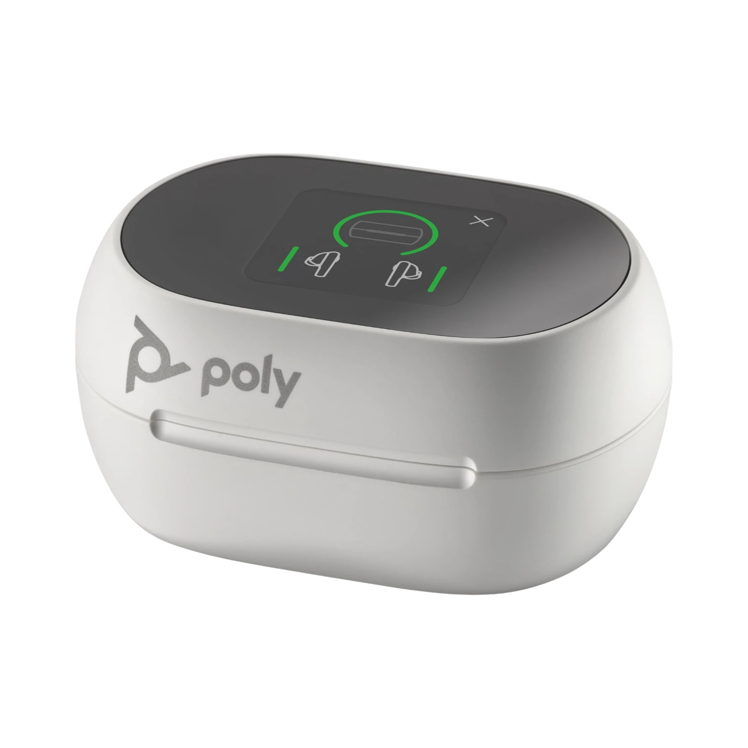The Poly 8L587AA is a wireless headset designed to provide clear communication and high-quality audio for professionals who need reliable sound and comfort throughout their workday. It features a lightweight design at just 0.13 pounds and comes with a sleek white charging case equipped with a touchscreen interface for easy control. The included BT700 USB-A adapter ensures a stable connection with laptops and mobile devices, making it a flexible choice for users who switch between different platforms.