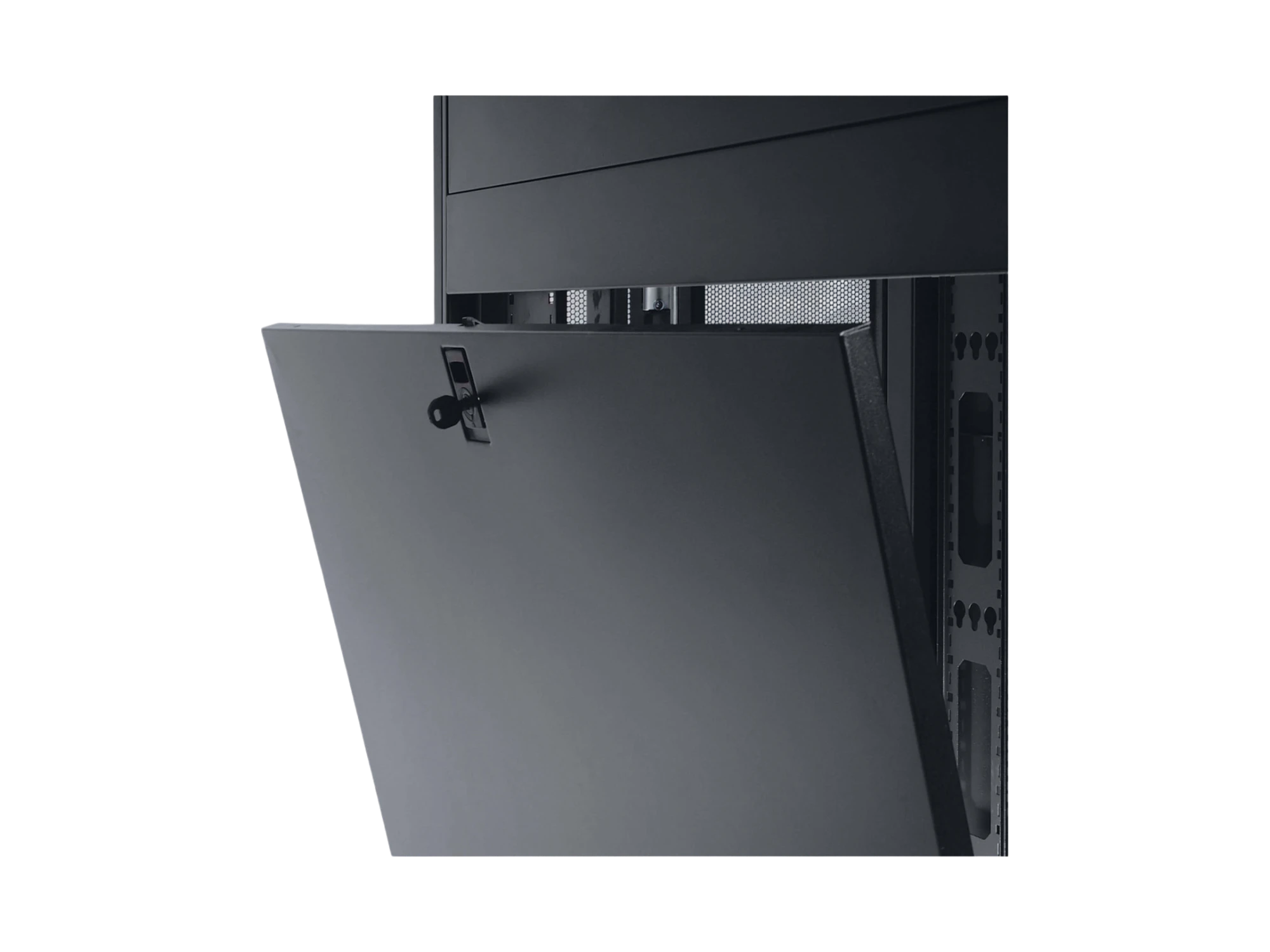 - Lockable doors and side panels enhance physical security to protect sensitive hardware from unauthorized access