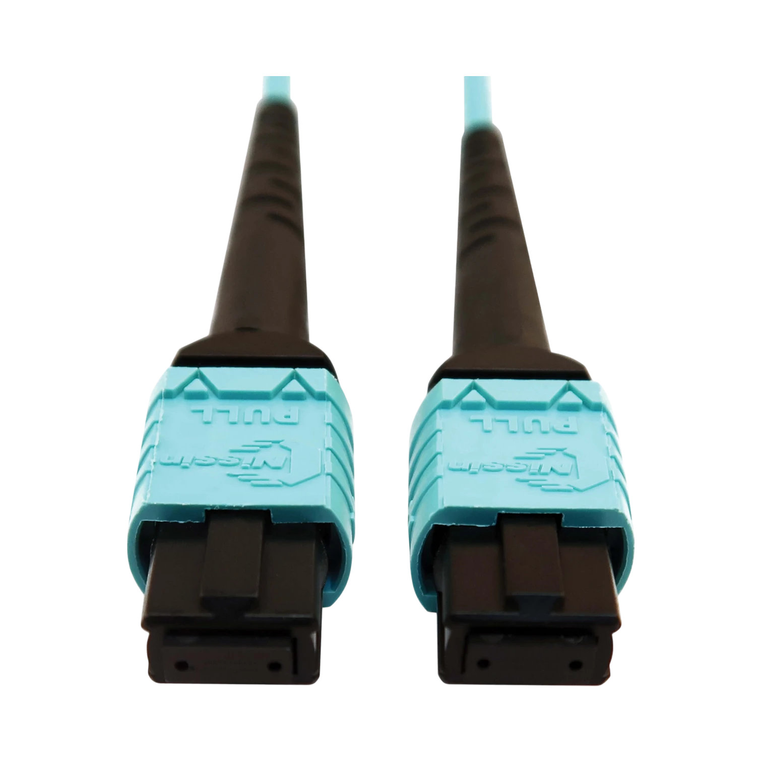 400G Multimode 50/125 OM4 Plenum-Rated Fiber Optic Cable, 24F MTP/MPO-PC (F/F), Aqua, 10m