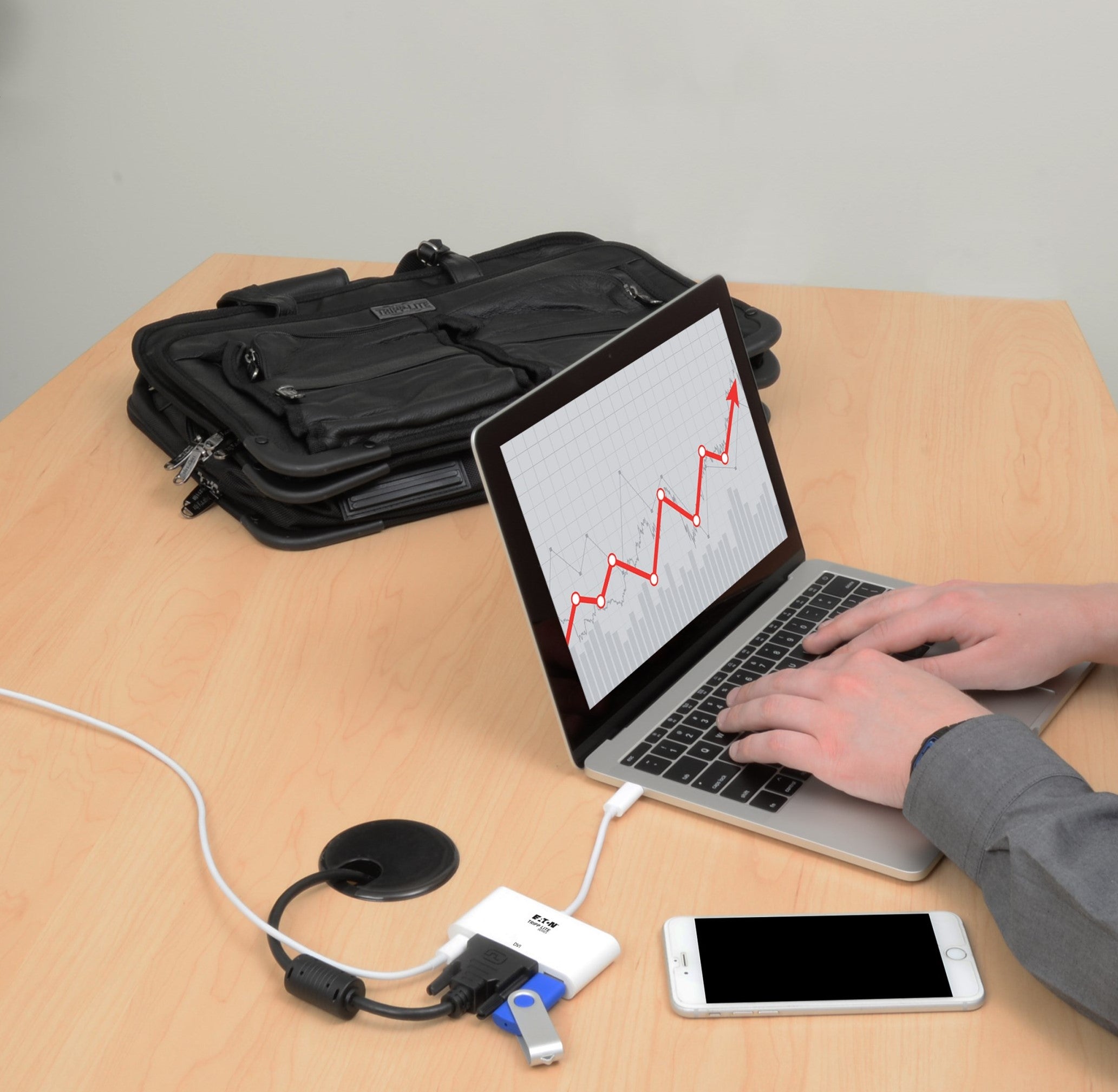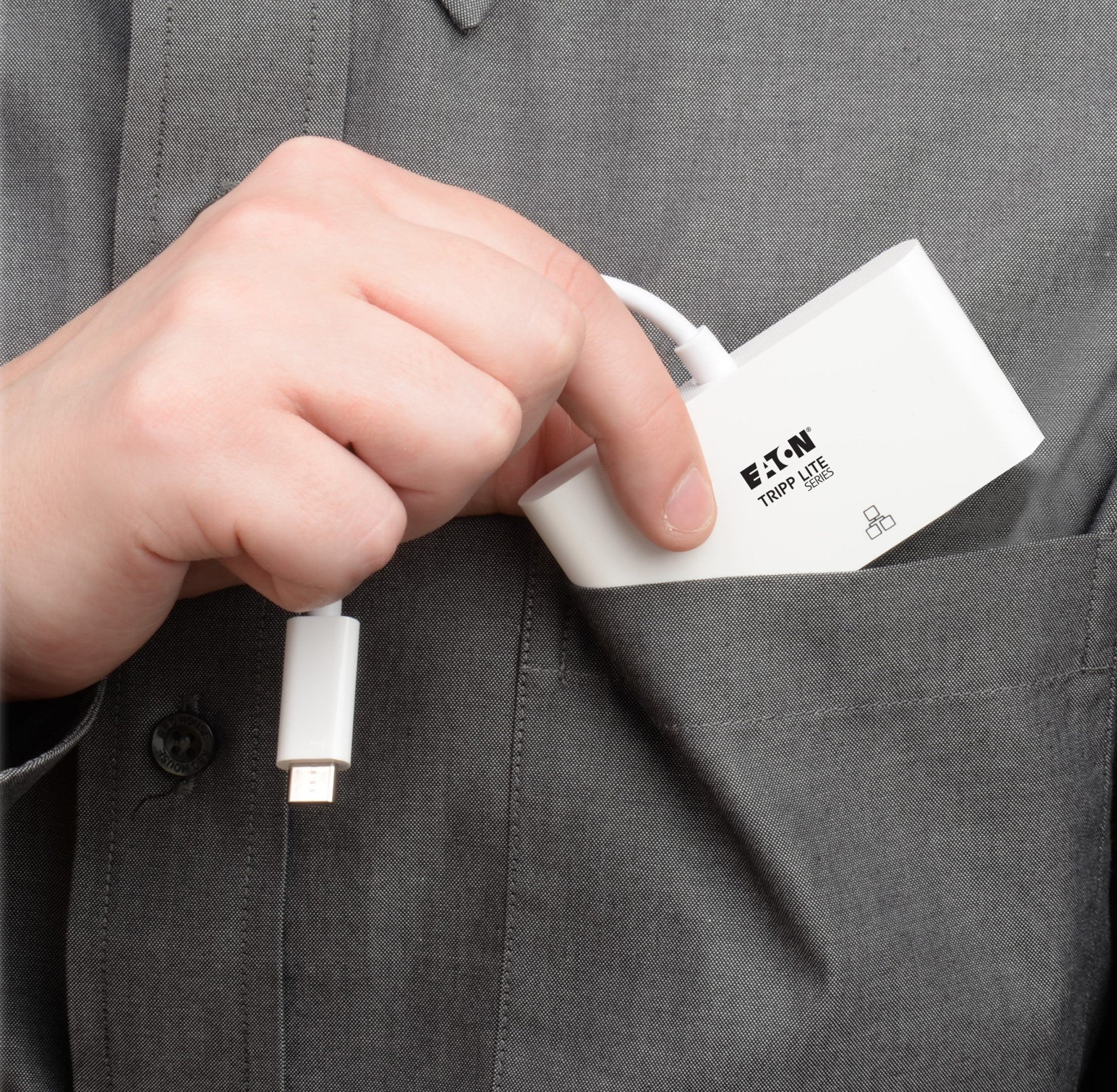 The Tripp Lite U444-06N-DU-C is a USB-C to DVI multiport adapter that expands your device’s connectivity by converting a USB-C or Thunderbolt 3 port into a versatile hub. It supports 1080p video output at 60 Hz, allowing you to connect to DVI displays with clear and sharp images. Alongside video, it offers a USB-A port for peripherals and a USB-C power delivery port that supplies up to 60 watts, enabling you to charge your laptop or device while using the adapter.