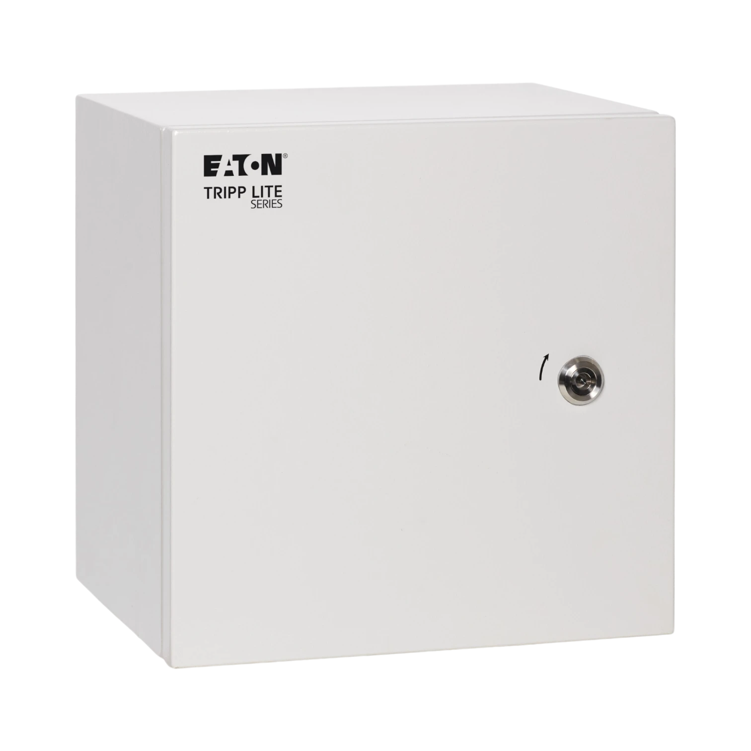 The Tripp Lite SRIN4121210 is an outdoor industrial enclosure designed to safeguard sensitive electronic equipment in harsh environments. Constructed from 14-gauge steel with a powder-coated finish, it meets NEMA 4 standards for protection against water, dust, and ice. Its compact dimensions of 12 by 12 by 10 inches make it suitable for wall or pole mounting without occupying excessive space, while the locking door ensures secure access control.