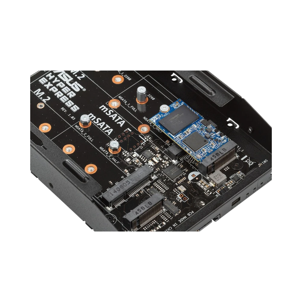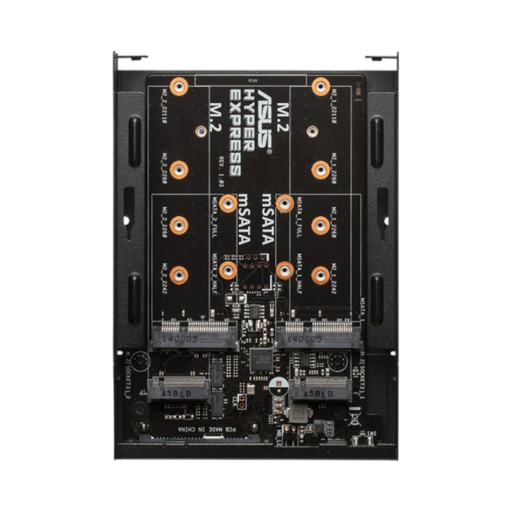 The ASUS HYPER EXPRESS is an internal RAID enclosure designed to fit into a standard 3.5-inch drive bay, enabling you to add up to two SATA-based M.2 or mSATA solid-state drives to your desktop system. It supports both Normal (AHCI) mode for independent drive operation and RAID 0 mode to stripe data across both drives, delivering transfer speeds up to 10 Gb/s. This makes it well suited for tasks that require fast storage access, such as video editing, gaming, and other demanding workflows.