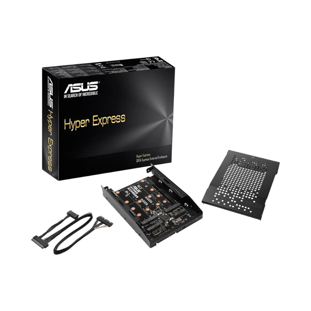 Setting up the ASUS Hyper Express is designed to be quick and straightforward. The enclosure fits into a standard 3.5-inch drive bay, and the included SATA Express and LED cables connect easily to your motherboard and power supply. The package also provides screws to secure the enclosure firmly inside your case, ensuring a stable installation. This makes it a convenient option for users who want to upgrade storage performance without complicated hardware changes.