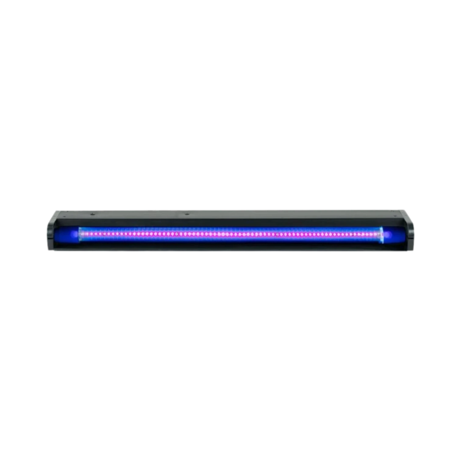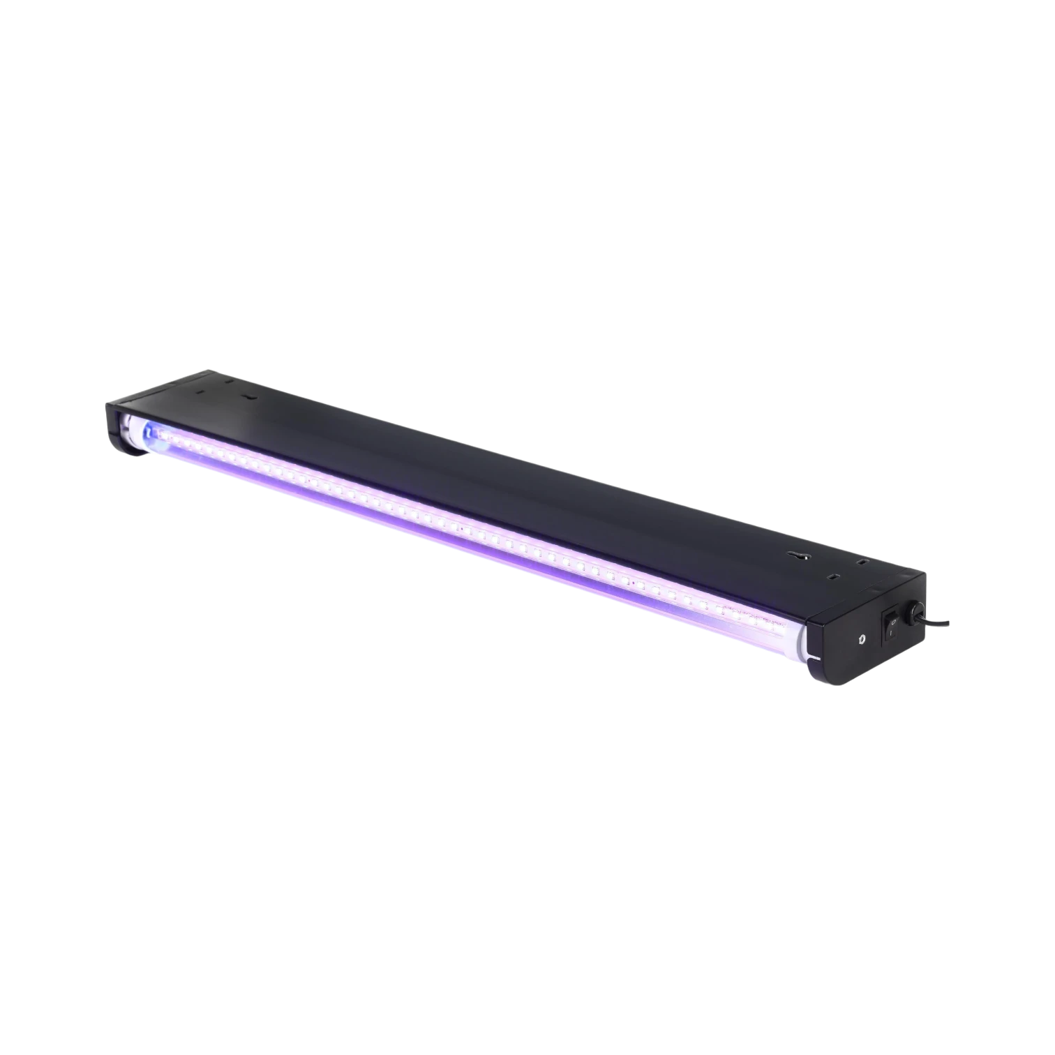 The ADJ UVLED 24 Black Light Bar is a compact ultraviolet lighting fixture designed to provide consistent black light effects in small performance spaces, lounges, and mobile productions. It features 48 SMD UV LEDs that emit light within a wavelength range of 395 to 410 nanometers, delivering broad coverage with a 120-degree beam angle. Drawing only 10 watts of power, this energy-efficient unit offers a long lifespan of up to 50,000 hours, making it a practical choice for extended use without frequent maintenance.
