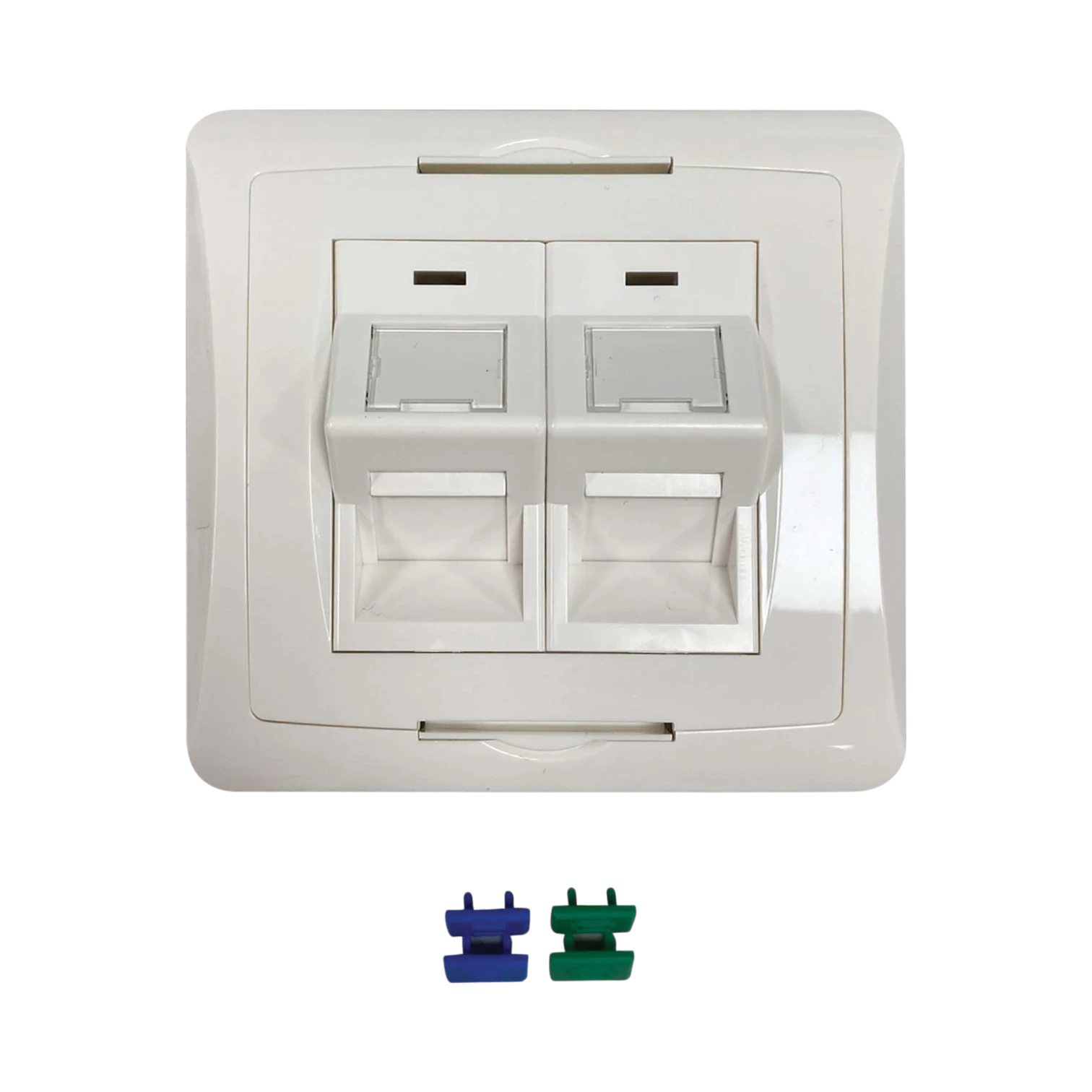 - Ports: 2 keystone jack cutouts (unloaded, shuttered)