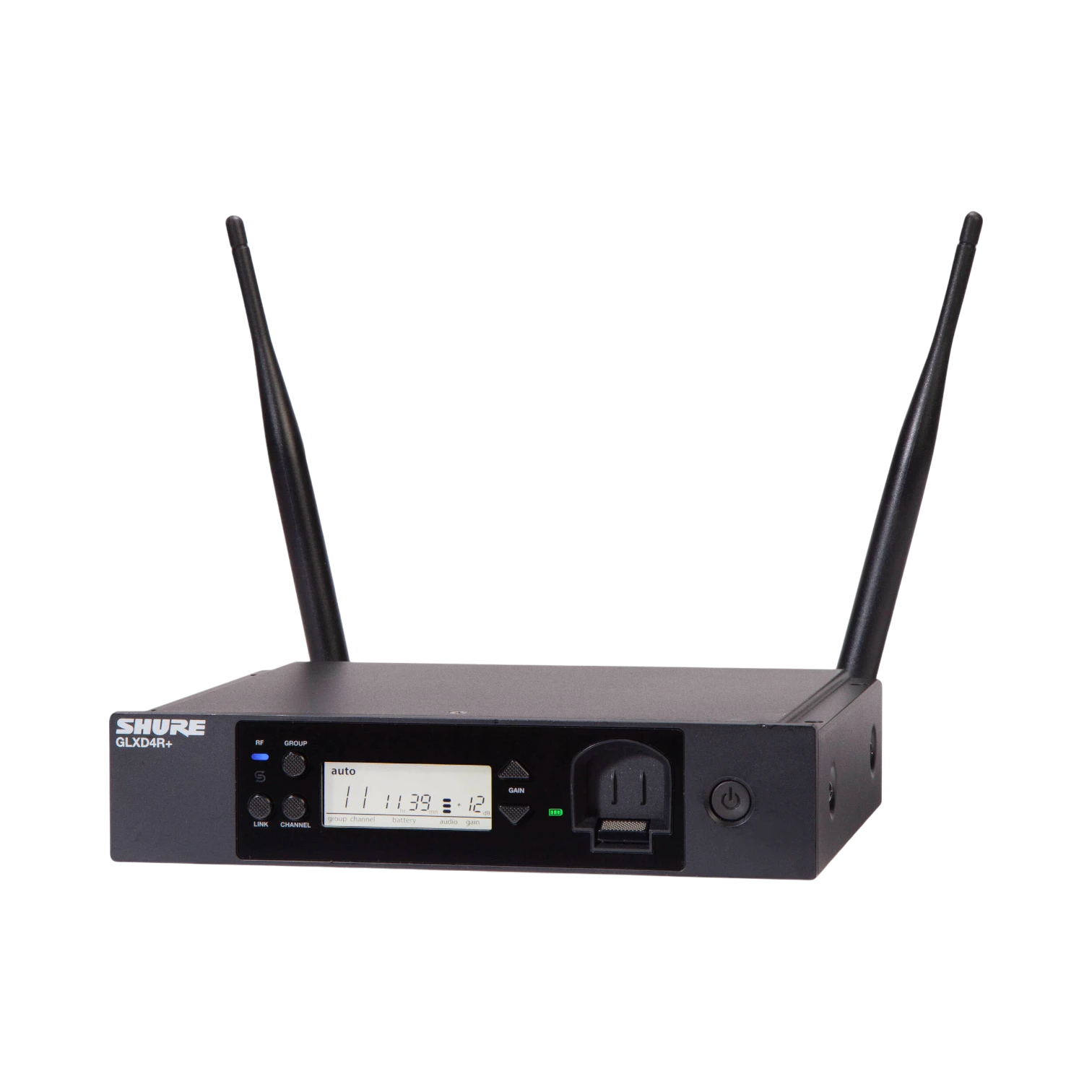 The Shure GLXD24R+/B87A-Z3 is a dual-band wireless vocal rack system designed to deliver clear, professional-quality sound for vocalists, presenters, and performers. It includes the BETA 87A handheld microphone, which features a supercardioid pattern to focus on your voice while reducing background noise. Operating on both 2.4 GHz and 5.8 GHz frequencies, the system automatically scans for the best channels to maintain a stable wireless connection. The half-rack receiver offers front-panel charging for the included SB904 rechargeable battery, which provides up to 12 hours of use and quick recharge times. Balanced XLR and 1/4-inch outputs ensure compatibility with a wide range of sound systems.