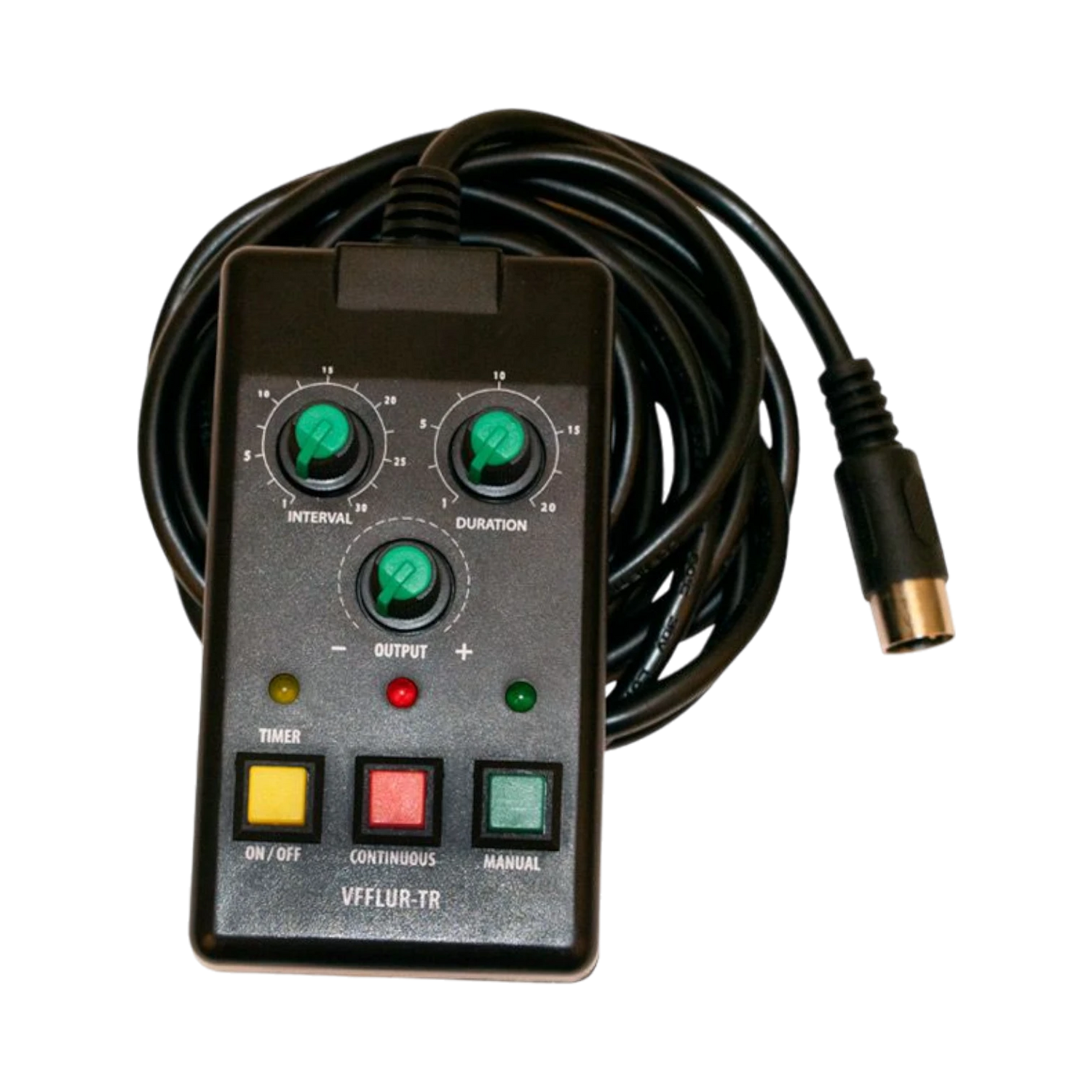 - Includes a 9-foot wired remote control allowing continuous snow, manual bursts, or interval settings with adjustable duration and volume