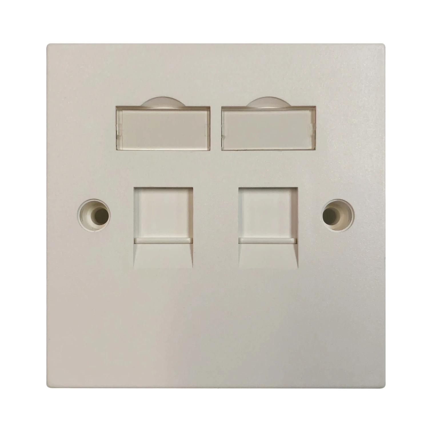 2-Port UK-Style Keystone Wall Plate, Unloaded Shuttered Module, White