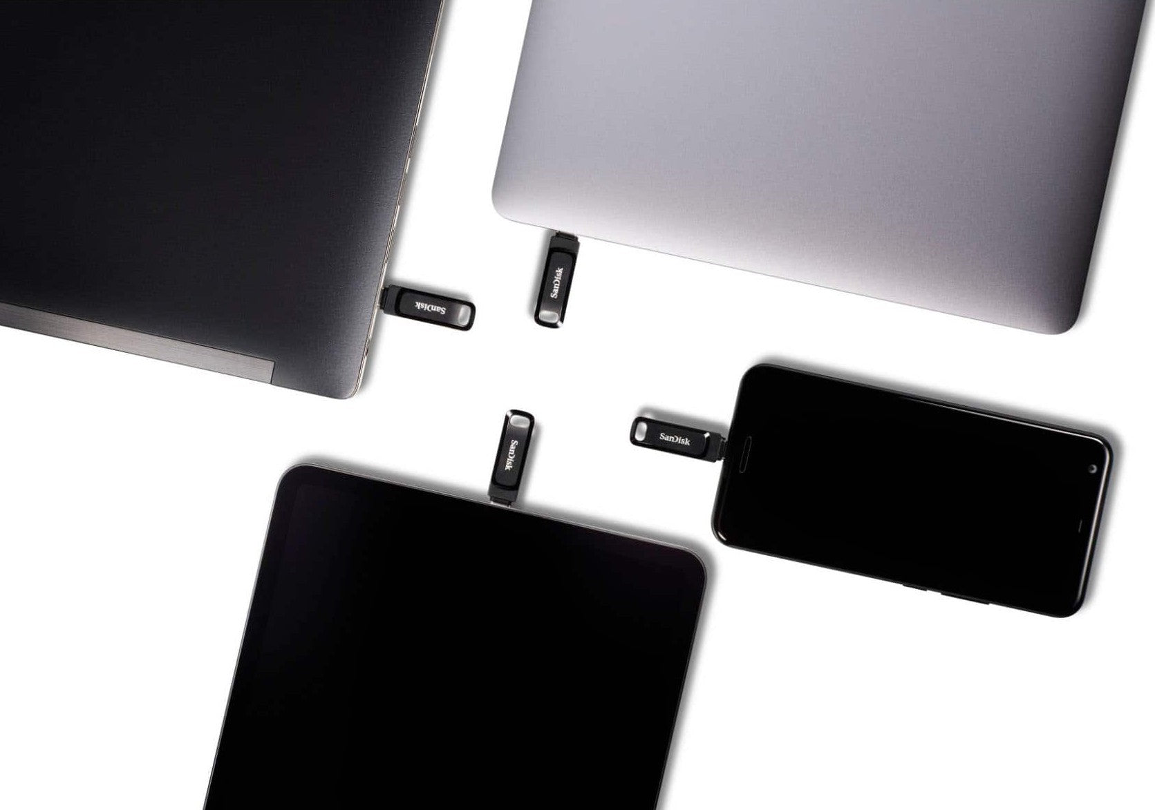 The rotating cover protects the connectors from dust and damage when not in use, while the built-in keyring hole makes it easy to carry with you. It also supports automatic data backup through the SanDisk Memory Zone app, helping you keep your files organized and secure. This flash drive works well with the iPhone 15 and iPhone 15 Pro via the Apple Files app, making it a practical choice for users who need reliable portable storage across different platforms.