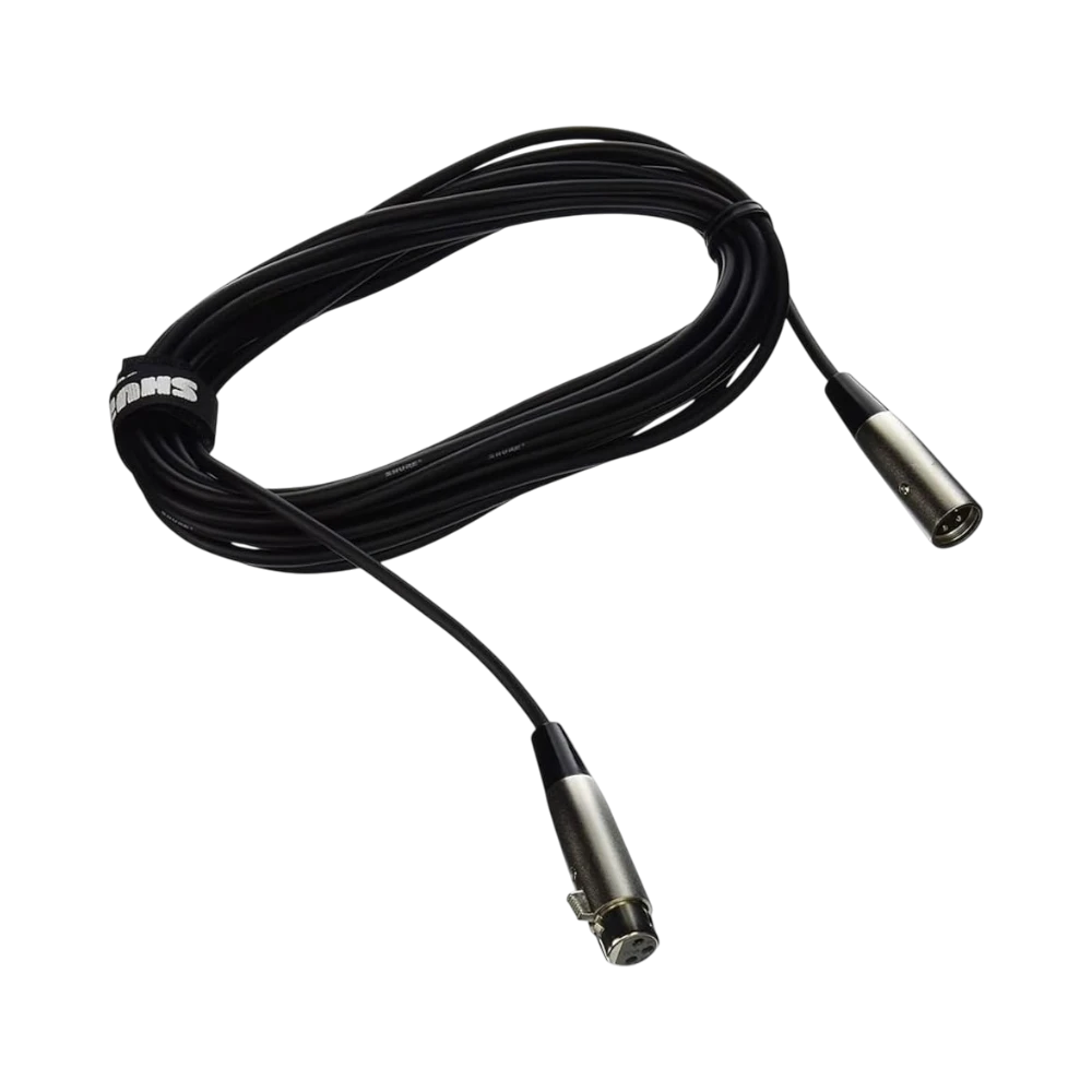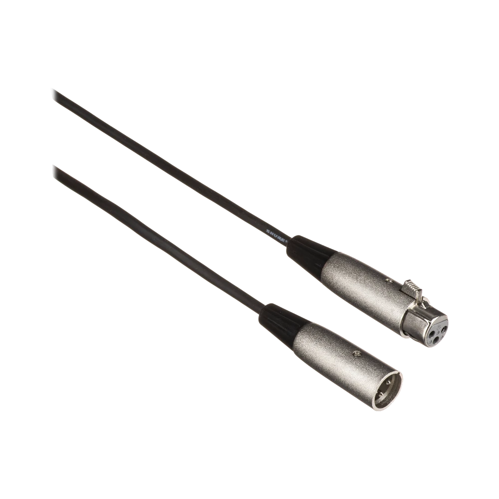 The Shure C25J is a 25-foot Hi-Flex XLR microphone cable designed to provide reliable, low-impedance audio connections over longer distances. It features 3-pin XLR male and female connectors housed in chrome shells that ensure stable signal transfer. The cable’s 26 AWG wire maintains clear audio quality with minimal interference, making it well suited for professional audio setups in studios, live stages, or broadcast environments.
