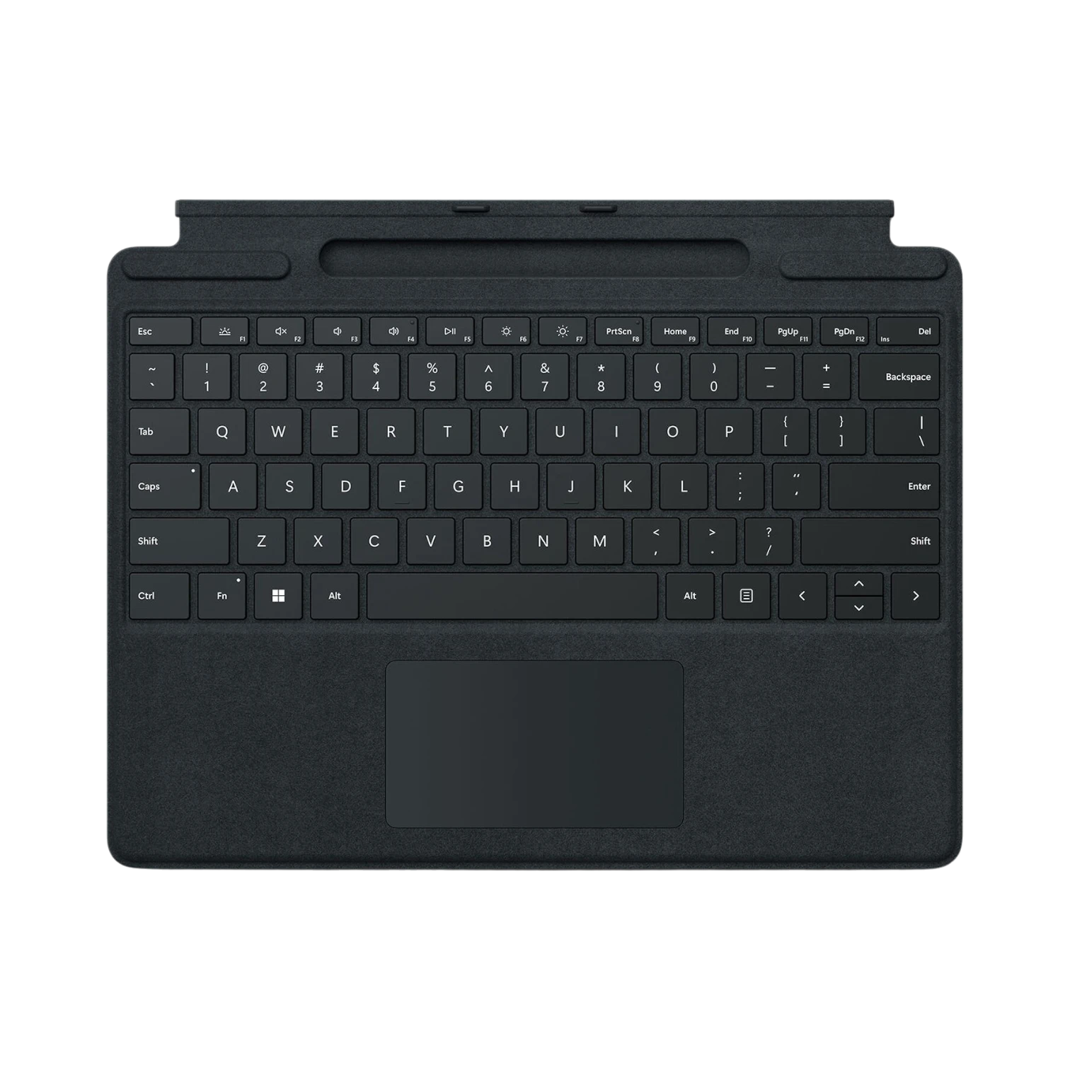 The Microsoft 8XB-00001 is a signature keyboard designed to transform your Surface Pro 8, 9, or X into a versatile and efficient workstation. It features mechanical keys that deliver precise and comfortable typing, paired with a large glass touchpad for smooth and accurate navigation. Crafted with premium Alcantara fabric, this keyboard enhances both the feel and style of your device while offering integrated storage and wireless charging for the Microsoft Slim Pen 2.