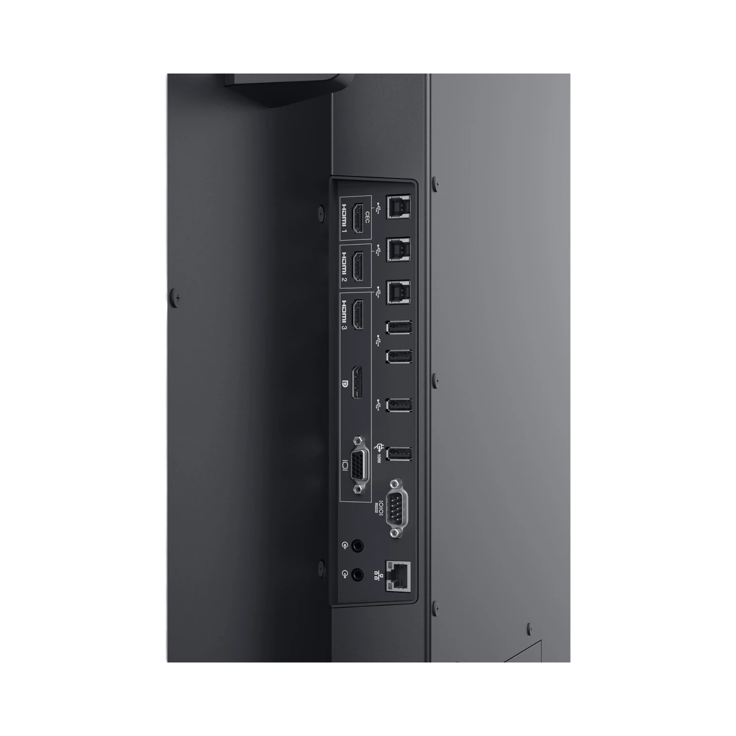 - Connectivity: HDMI, DisplayPort, USB-C, RS-232, RJ45, HDMI CEC