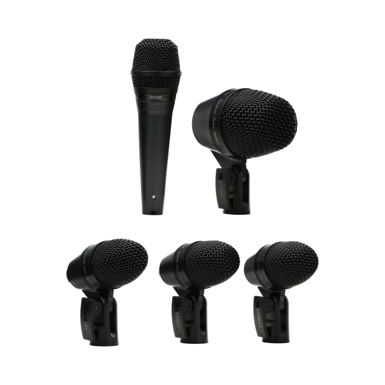 - Microphones included: one PGA52 (kick drum), three PGA56 (snare and toms), one PGA57 (instruments or additional snare)