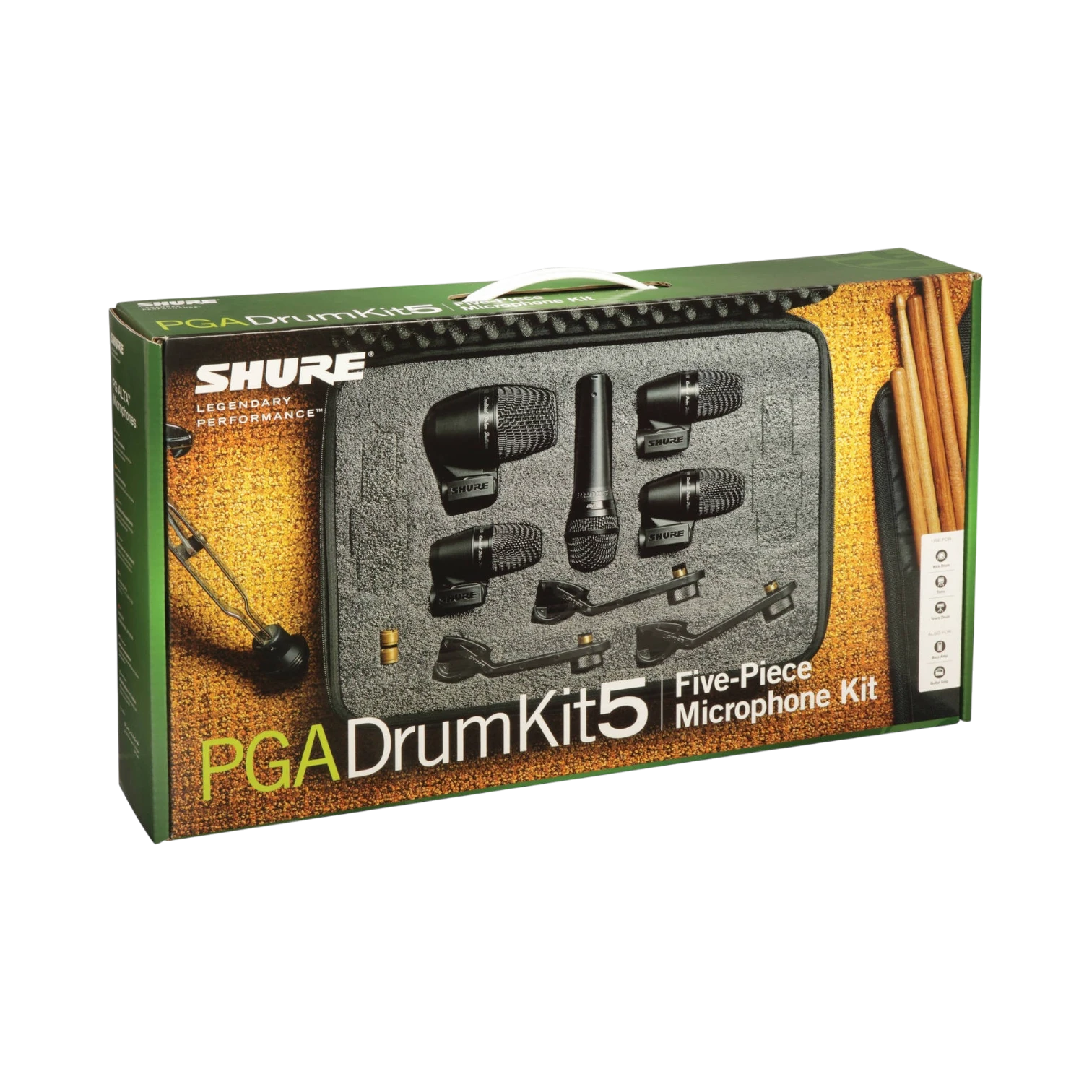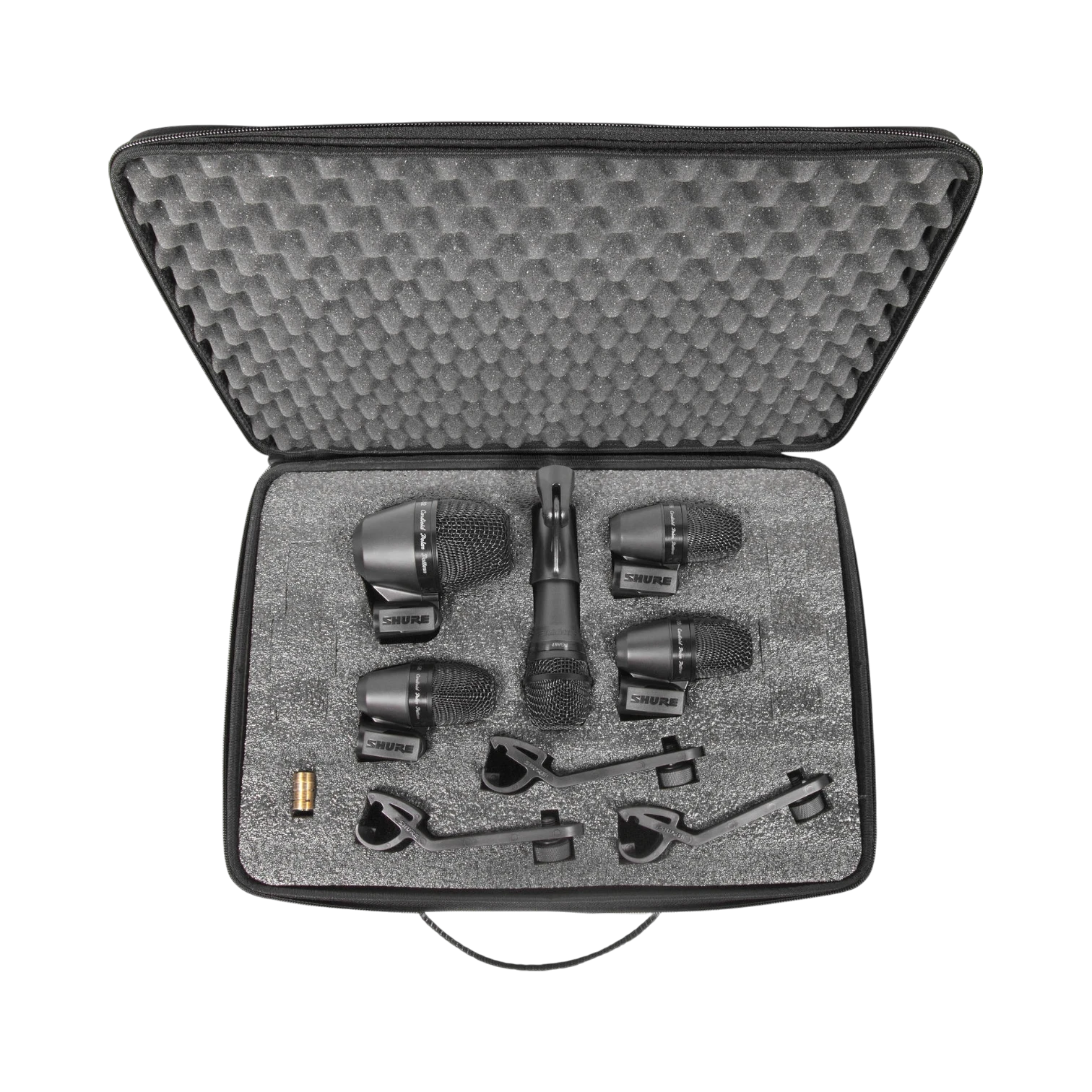 The Shure PGADRUMKIT5 is a 5-piece dynamic microphone kit designed for close-miking drum kits in live and studio settings. It includes specialized microphones for kick drum, snare, toms, and additional instruments, each with a cardioid polar pattern to focus on the intended sound source while minimizing background noise. This kit provides a complete solution for capturing clear and balanced drum sounds, with frequency responses tailored to each microphone’s role and accessories that simplify setup and transport.