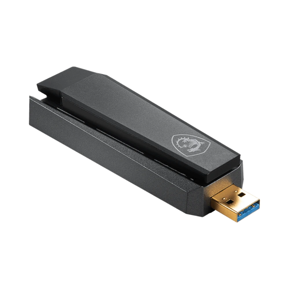 The MSI AX1800WIIFIUSB is a dual-band Wi-Fi adapter that upgrades your laptop or desktop to Wi-Fi 6, delivering wireless speeds up to 1.76 Gbps over both 2.4 GHz and 5 GHz bands. It connects through a USB 3.2 Gen 1 port, making it easy to add faster and more reliable wireless connectivity without replacing your entire system. This adapter is well suited for streaming, gaming, and remote work environments where stable internet is essential.