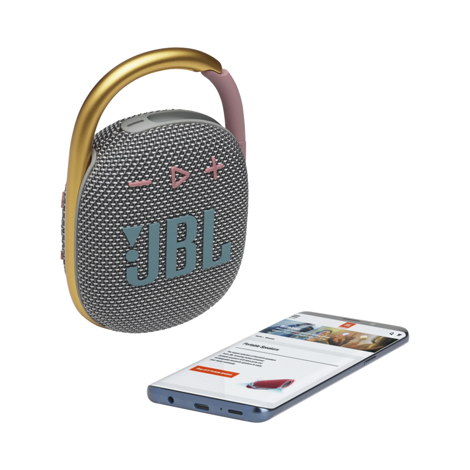 The JBL JBLCLIP4GRYAM is a portable Bluetooth speaker designed to deliver clear and full sound with solid bass in a compact and easy-to-carry form. It features a 5-watt driver that produces punchy audio suitable for outdoor adventures or casual listening at home. With up to 10 hours of battery life and Bluetooth 5.1 connectivity, it offers reliable wireless performance and long-lasting playtime. Its IP67 rating ensures it is waterproof and dustproof, making it ready for use in various environments.