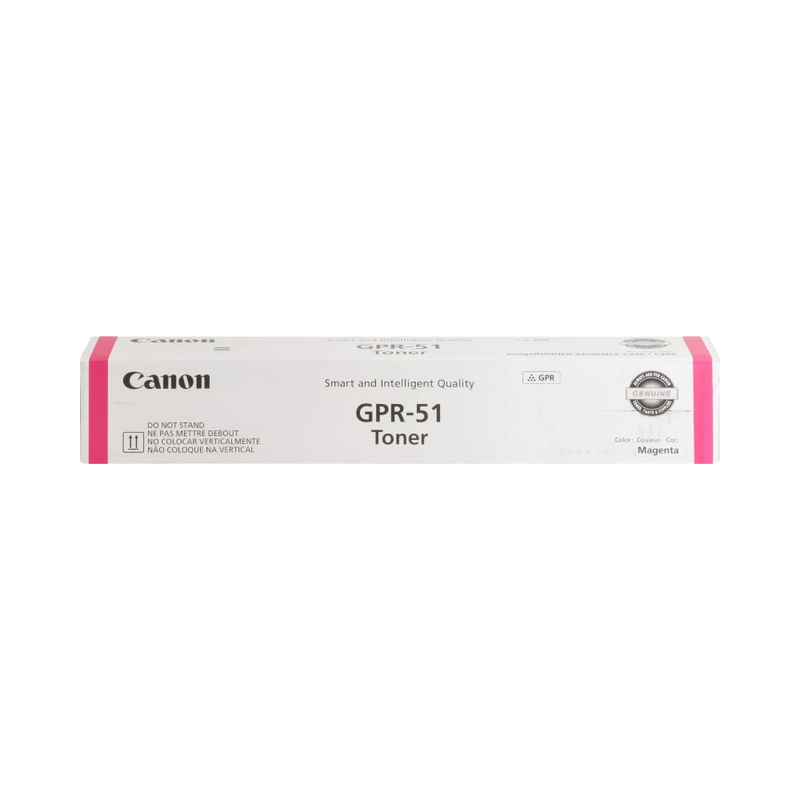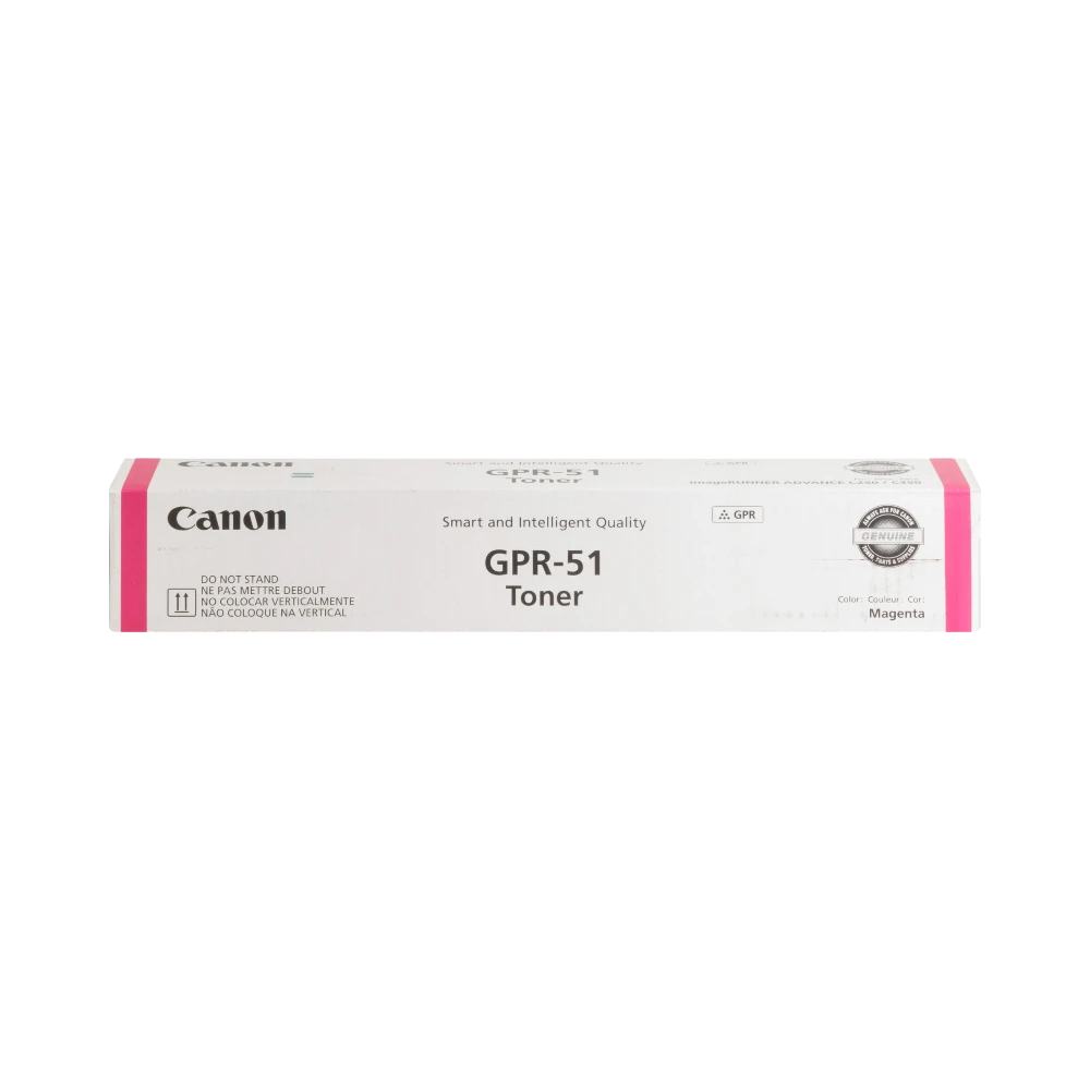 The Canon GPR51M is a magenta toner cartridge designed for Canon imageRunner Advance C250iF and C350iF printers, delivering vibrant color output for professional documents. With a high yield of approximately 21,500 pages, it supports extended printing tasks without frequent replacements, making it suitable for busy office environments that require consistent color accuracy and sharp prints.