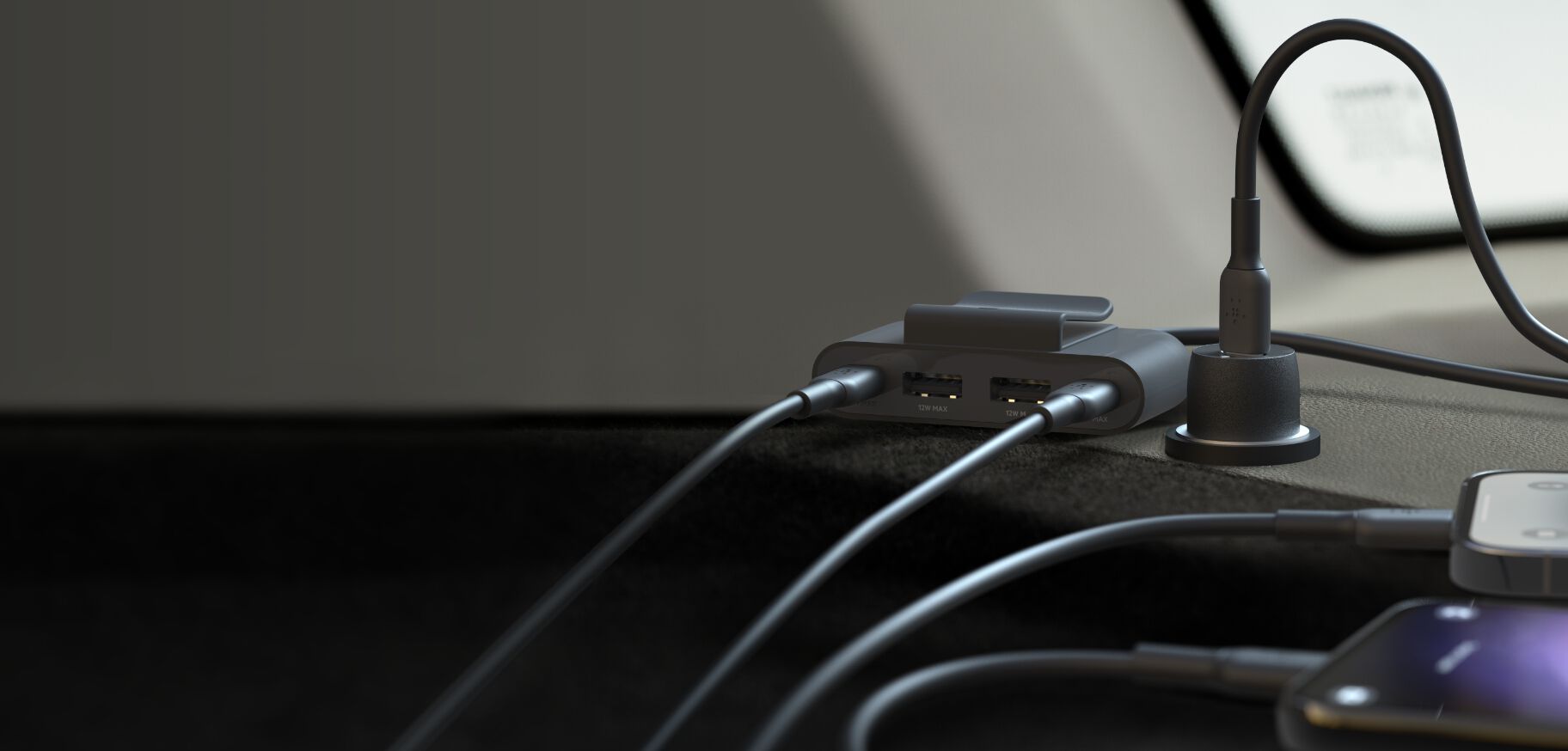 BoostCharge 30W USB-C Car Charger with 4-Port Extender (Black)