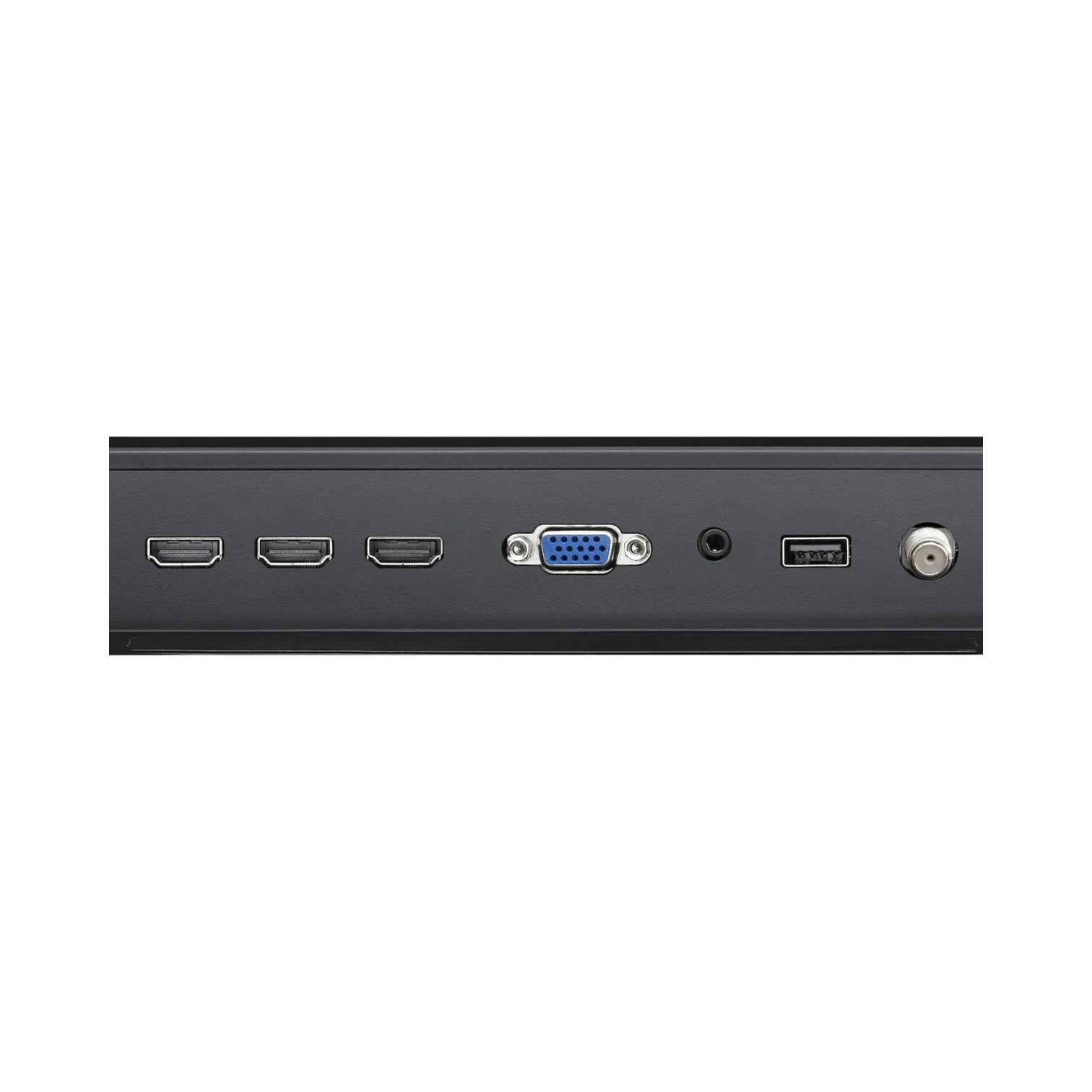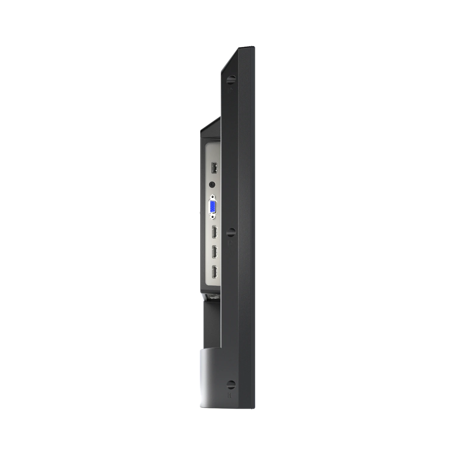 Equipped with multiple input options including three HDMI ports, VGA, and coaxial connections, the monitor easily connects to a wide range of devices. Its built-in USB media player supports photos, videos, and audio files, allowing for convenient digital signage or presentations without needing an external player. The integrated NTSC/ATSC tuner with Clear QAM compatibility adds flexibility by enabling direct access to broadcast content.