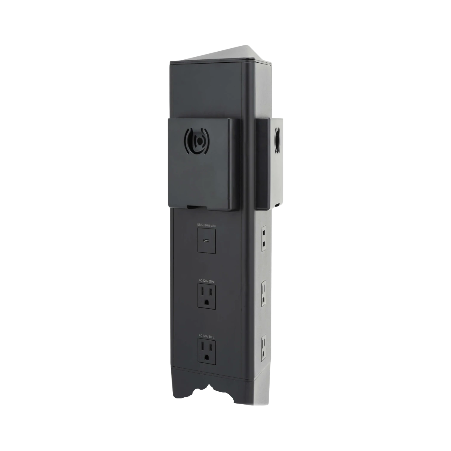 This power tower supports a wide range of devices through its combination of AC outlets and USB ports. The USB-C port’s 60-watt output is suitable for fast charging many modern laptops, tablets, and smartphones, while the USB-A ports handle additional mobile devices and accessories. Wireless charging pockets provide a convenient option for Qi-compatible smartphones, reducing cable clutter. The six AC outlets accommodate traditional plugs for monitors, printers, and other office or home electronics.