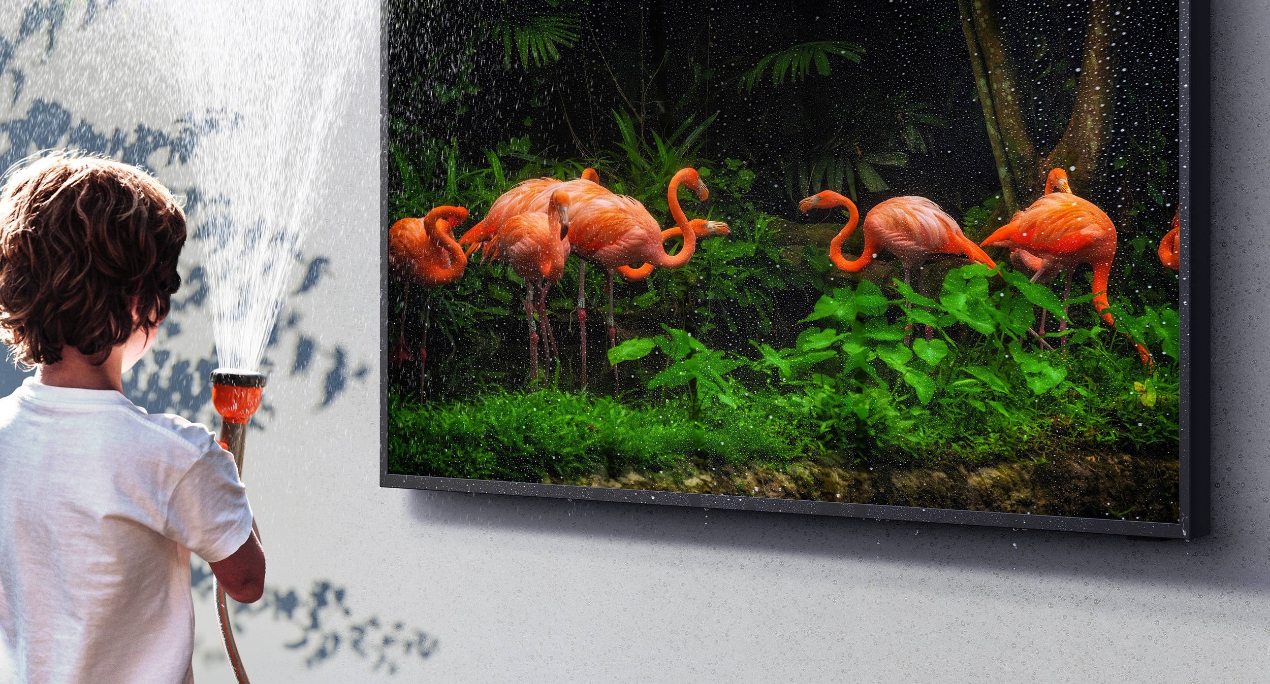 - IP55 weather resistance safeguards the TV against water, dust, and temperature extremes for durability