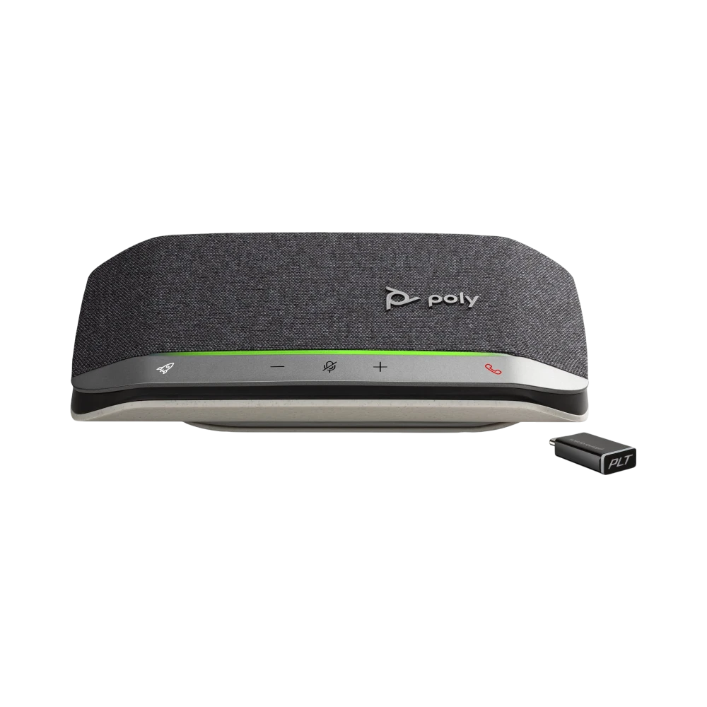 The Poly 772D0AA is a portable speakerphone designed to deliver clear and professional audio for calls and music wherever you work. It features a three-microphone array that captures your voice accurately while reducing background noise and echo. With full-duplex audio, conversations flow naturally without interruptions. The device offers up to 20 hours of battery life, making it suitable for long workdays or travel, and includes a built-in smartphone charger via a USB-A port for added convenience.