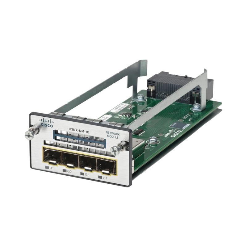 The Cisco C3KX-NM-1G= is a 4-port gigabit expansion module designed to enhance the connectivity of Cisco Catalyst 3560X and 3750X series switches. It provides four slots for 1-Gigabit SFP modules, enabling flexible fiber or copper connections tailored to your network requirements. With support for data transfer speeds up to 1000 Mbps, this module helps maintain fast and reliable network performance while allowing you to scale your infrastructure efficiently.