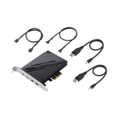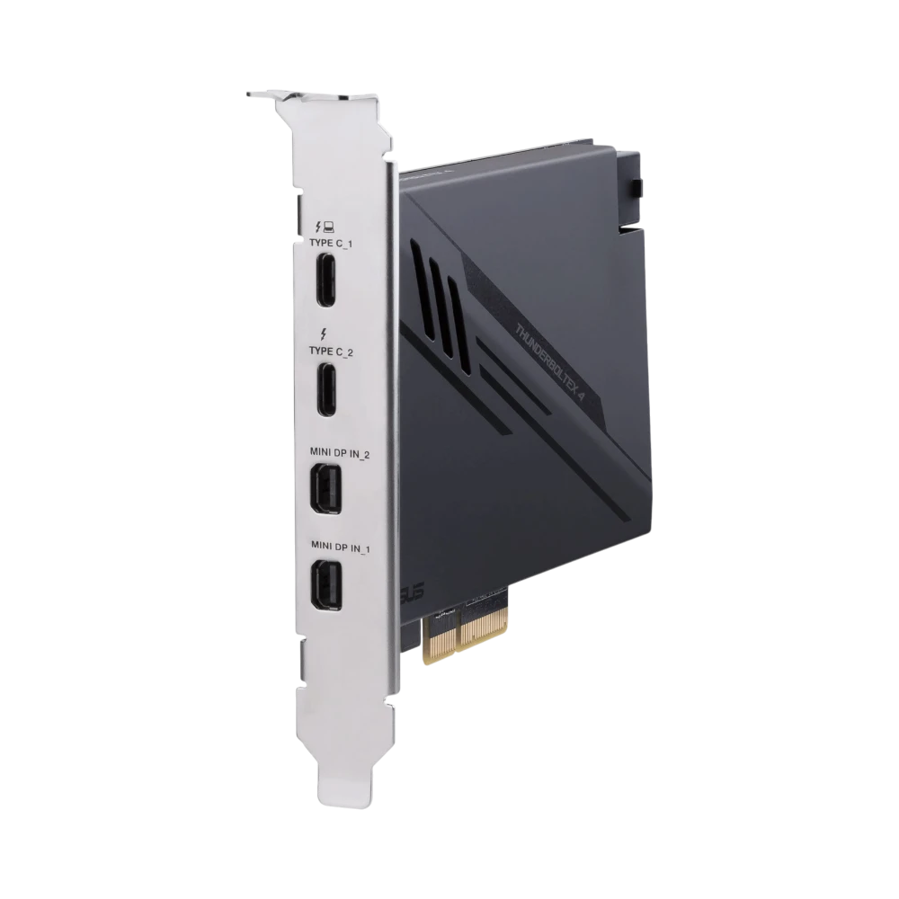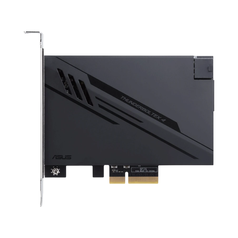 The ASUS THUNDERBOLTEX 4 is a high-speed expansion card designed to enhance your desktop with two Thunderbolt 4 ports, delivering up to 40 Gbps of bi-directional bandwidth. This card is perfect for users who need rapid data transfer and the ability to connect multiple high-performance devices, such as video editors, photographers, and gamers. It supports 8K Ultra HD video output through DisplayPort 1.4 and offers up to 100W USB-C charging, making it a versatile addition to professional workstations and gaming setups alike.