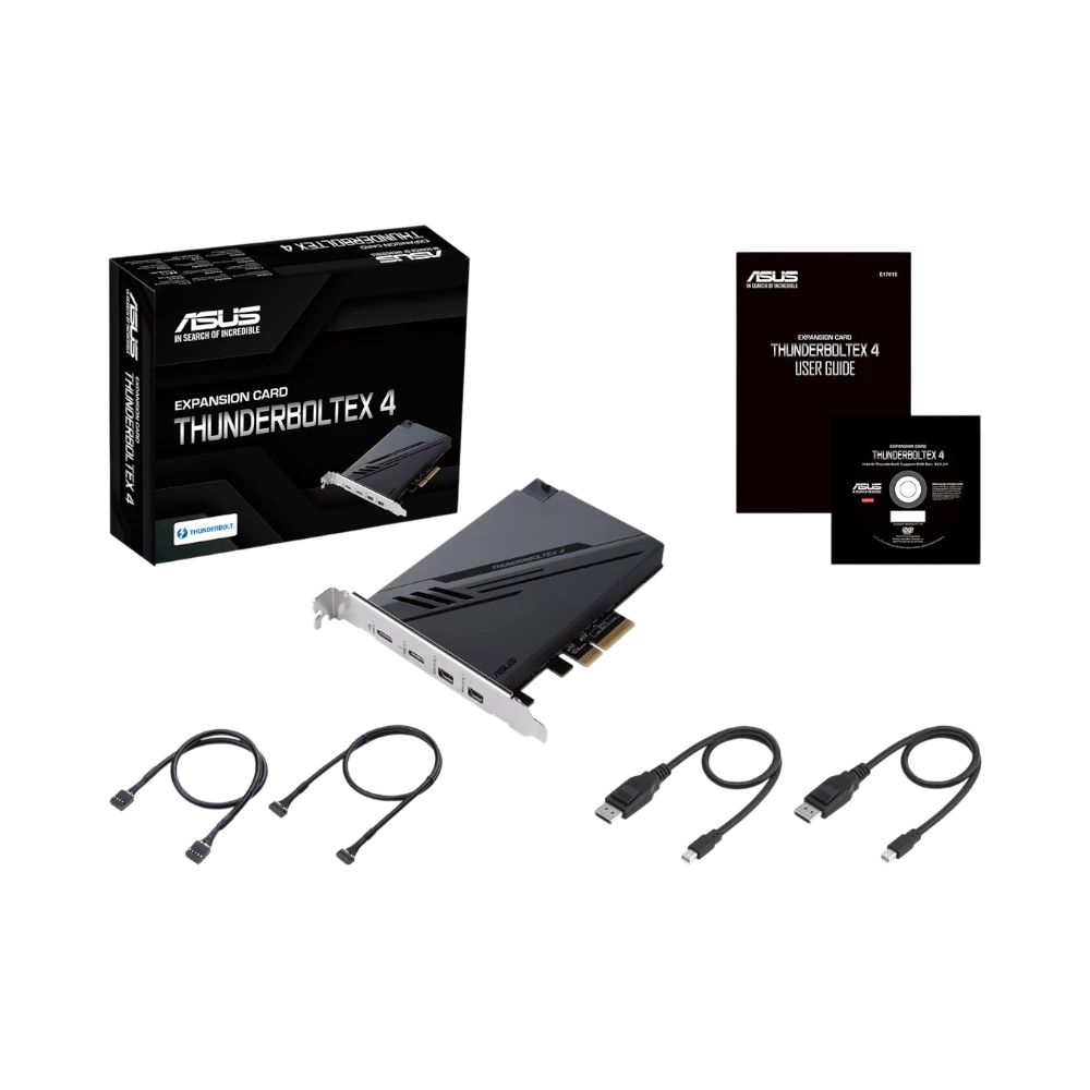 Installing the ASUS THUNDERBOLTEX 4 is straightforward, requiring a PCIe 3.0 x4 slot on your motherboard. The package includes all necessary cables to get started immediately, reducing setup time. Its design ensures a secure fit and reliable performance, making it suitable for users upgrading existing systems or building new workstations that demand high-speed data and video capabilities.