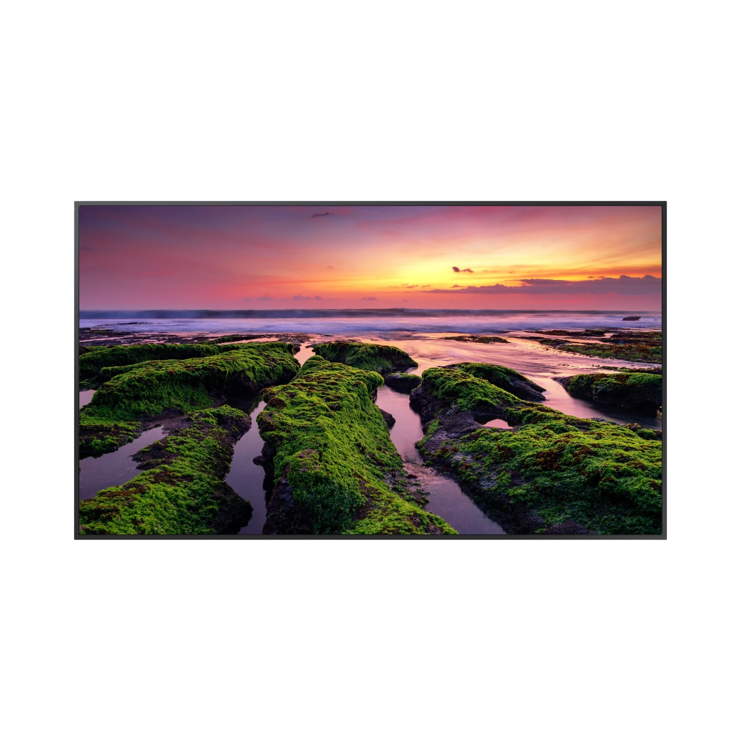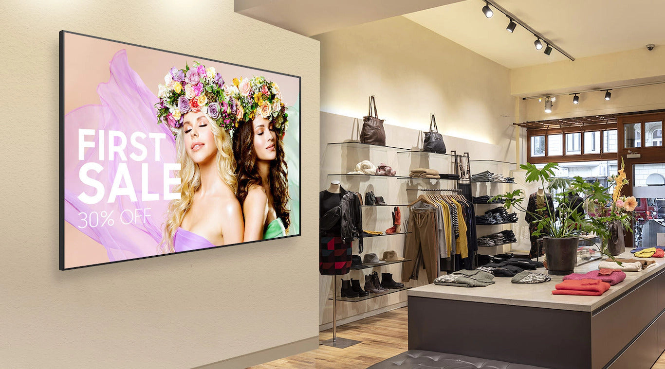- Slim and symmetrical design allows the display to fit seamlessly into conference rooms, retail spaces, and other professional settings.