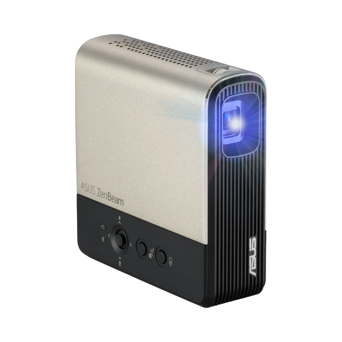 The ASUS E2 is a portable projector designed to bring big-screen entertainment and productivity wherever you go. It features a 300-lumen LED light source that projects clear images up to 100 inches with a native WVGA resolution of 854 x 480 pixels. Its compact and lightweight design makes it easy to carry between home, office, or travel, while supporting wireless mirroring from Android, iOS, and Windows devices for versatile connectivity.
