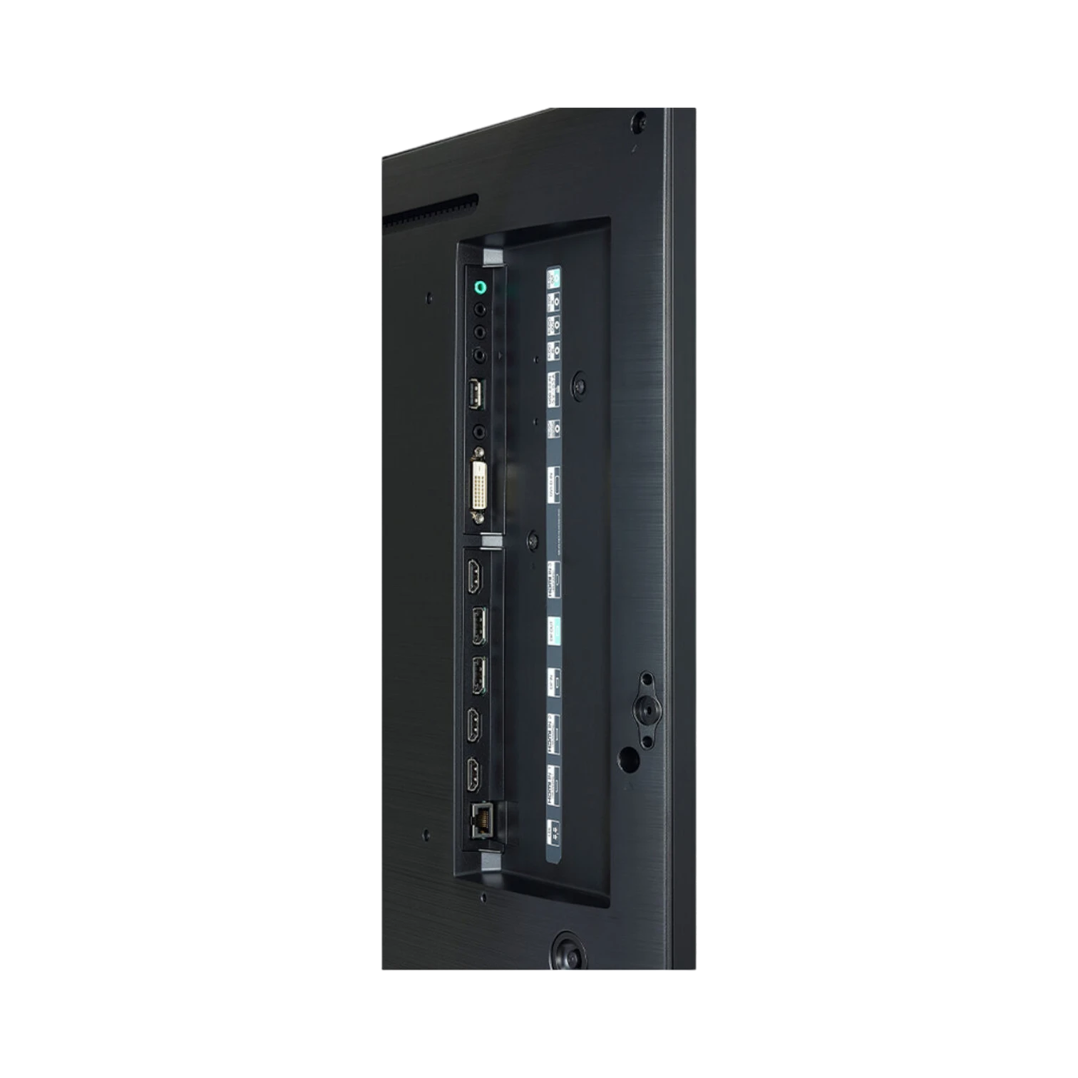 This display offers versatile connectivity options to accommodate a wide range of devices and content sources. The three HDMI ports support high-definition video and audio inputs, while the DisplayPort provides an additional high-quality connection for computers or media players. USB-A allows for direct playback of media files or firmware updates. These options make it easy to integrate the display into existing AV setups or digital signage networks.