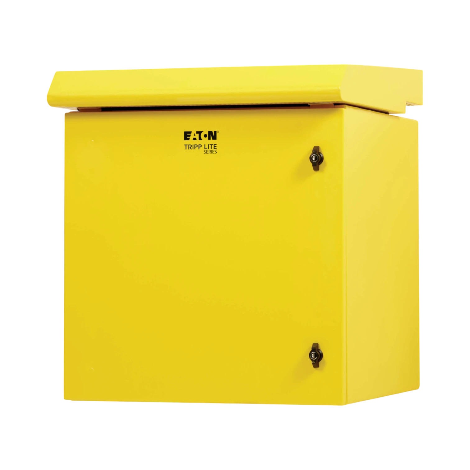 SmartRack Industrial Enclosure, NEMA 3R, Wall Mount, Metal, Locking, Fan With Thermal Switch, 23 in. Depth, 12U, Yellow