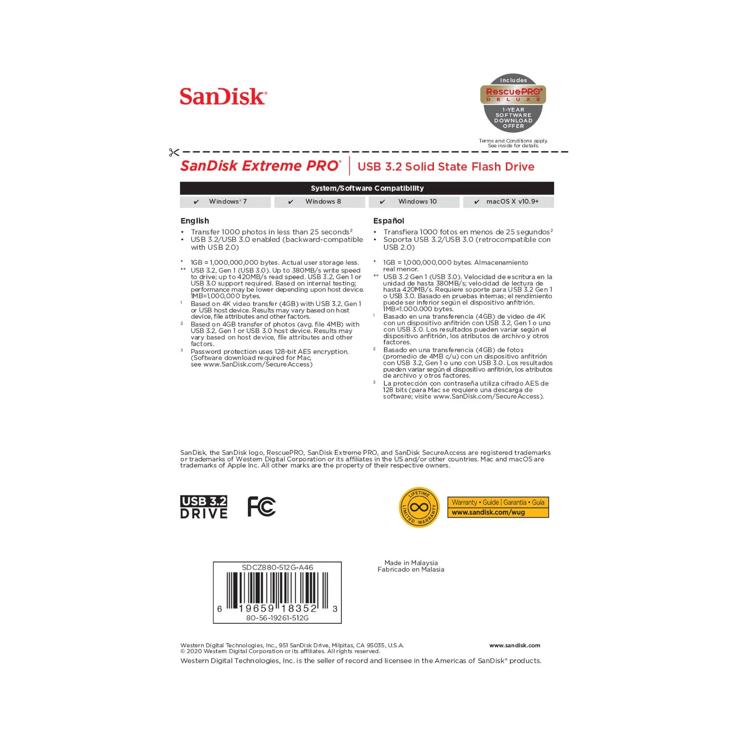 Extreme Pro 512GB USB 3.2 Solid State Flash Drive