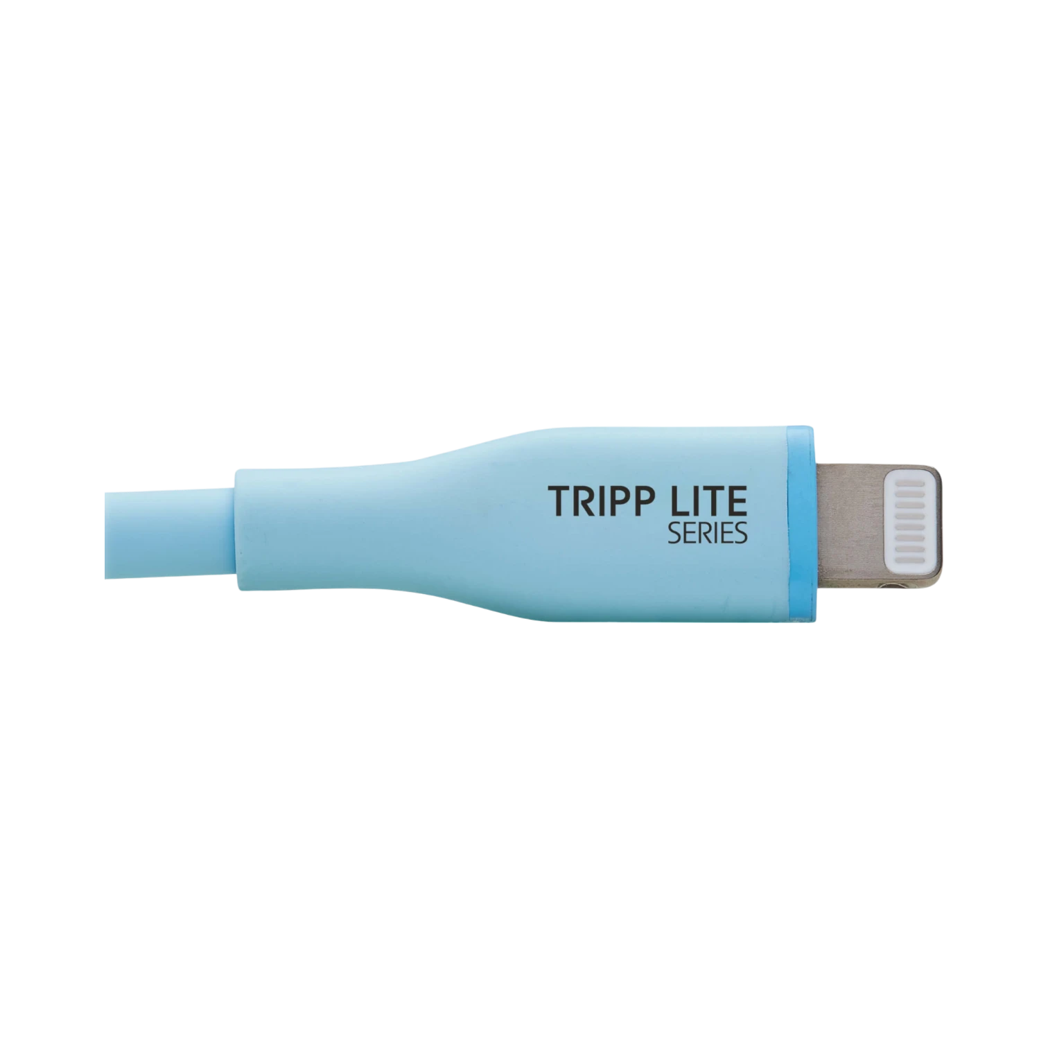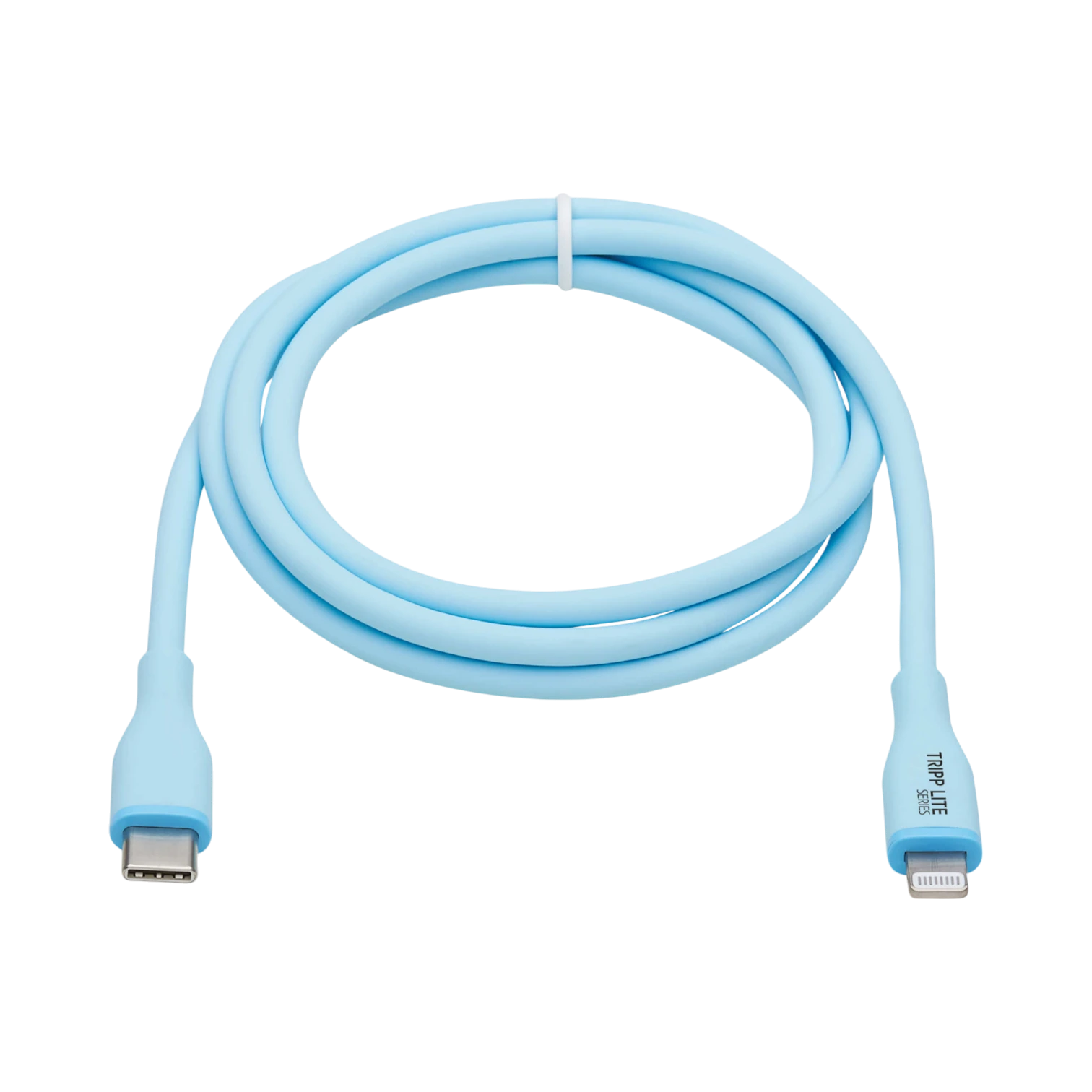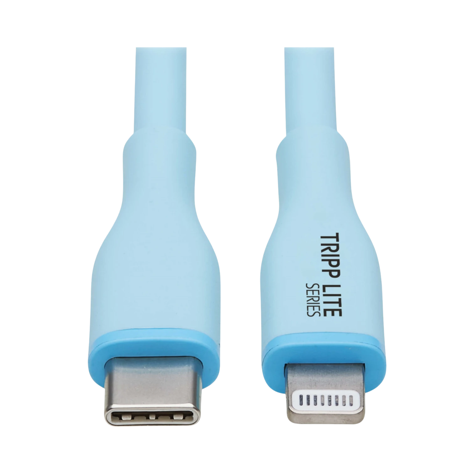 The Tripp Lite M102AB-003-S-LB is a 3-foot USB-C to Lightning charging cable designed specifically for Apple devices such as iPhone, iPad, and iPod. It supports USB 2.0 data transfer speeds up to 480 Mbps, providing reliable charging and syncing whether you are at home, in the office, or on the go. Its soft silicone jacket and antibacterial coating make it a practical and hygienic choice for everyday use.