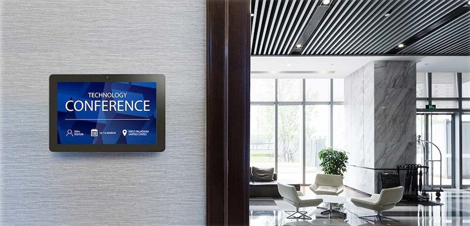 Its 10-point capacitive touchscreen supports multiple simultaneous touches, making it ideal for interactive kiosks and point-of-sale systems where quick and accurate input is essential. The front panel is IP65-rated, ensuring protection against dust and water, which enhances reliability in environments prone to spills or dust. Additionally, the tablet supports Power-over-Ethernet (PoE), allowing power and network connectivity through a single cable to simplify installation and reduce clutter.