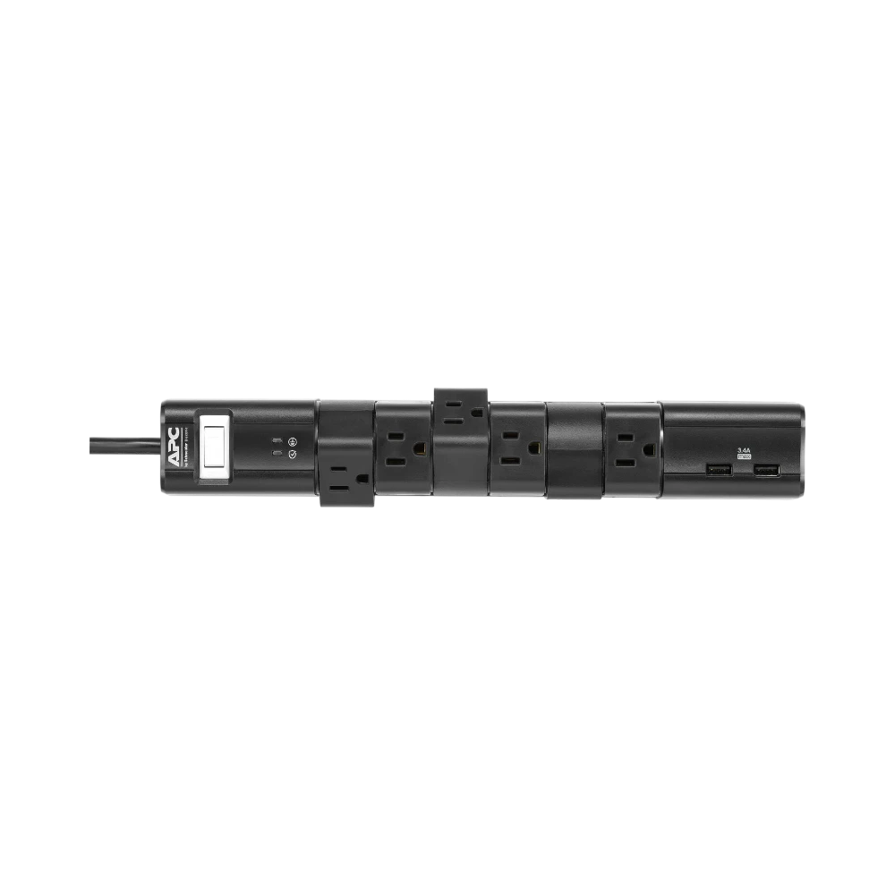 Essential SurgeArrest Rotating 6-Outlet Surge Protector with 5V 3.4A USB Ports (Black, 120V)
