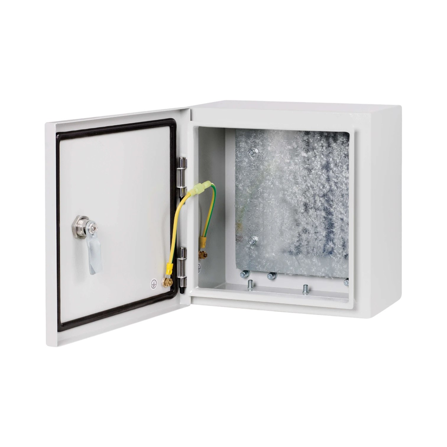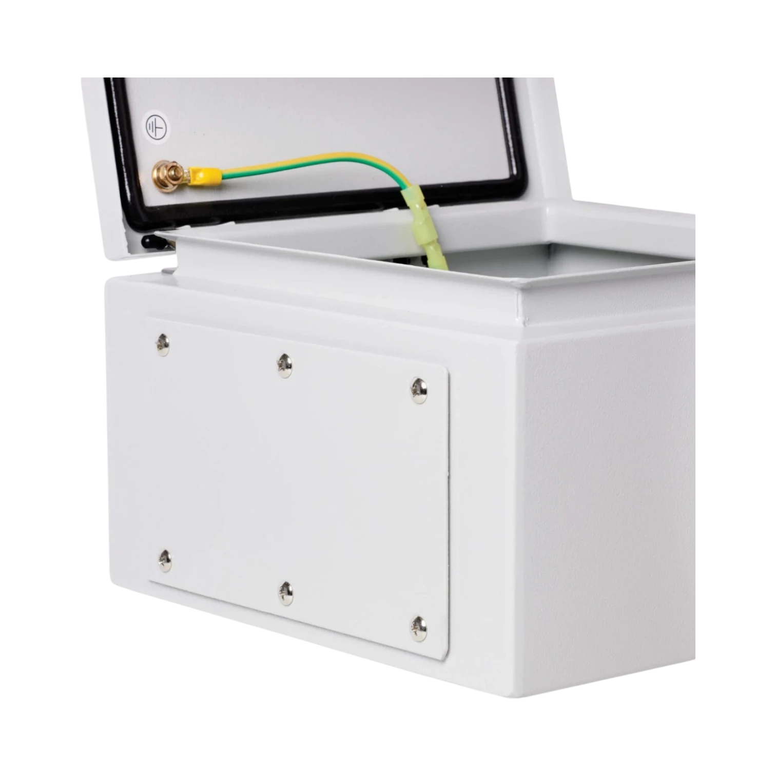 The enclosure’s design supports a variety of industrial and networking equipment by providing flexible mounting options inside. The bottom conduit cutout allows for neat cable routing, making it compatible with standard cabling setups used in industrial controls, network infrastructure, and security systems. Its weather-sealed construction ensures that connected devices remain protected even in outdoor or harsh environments.