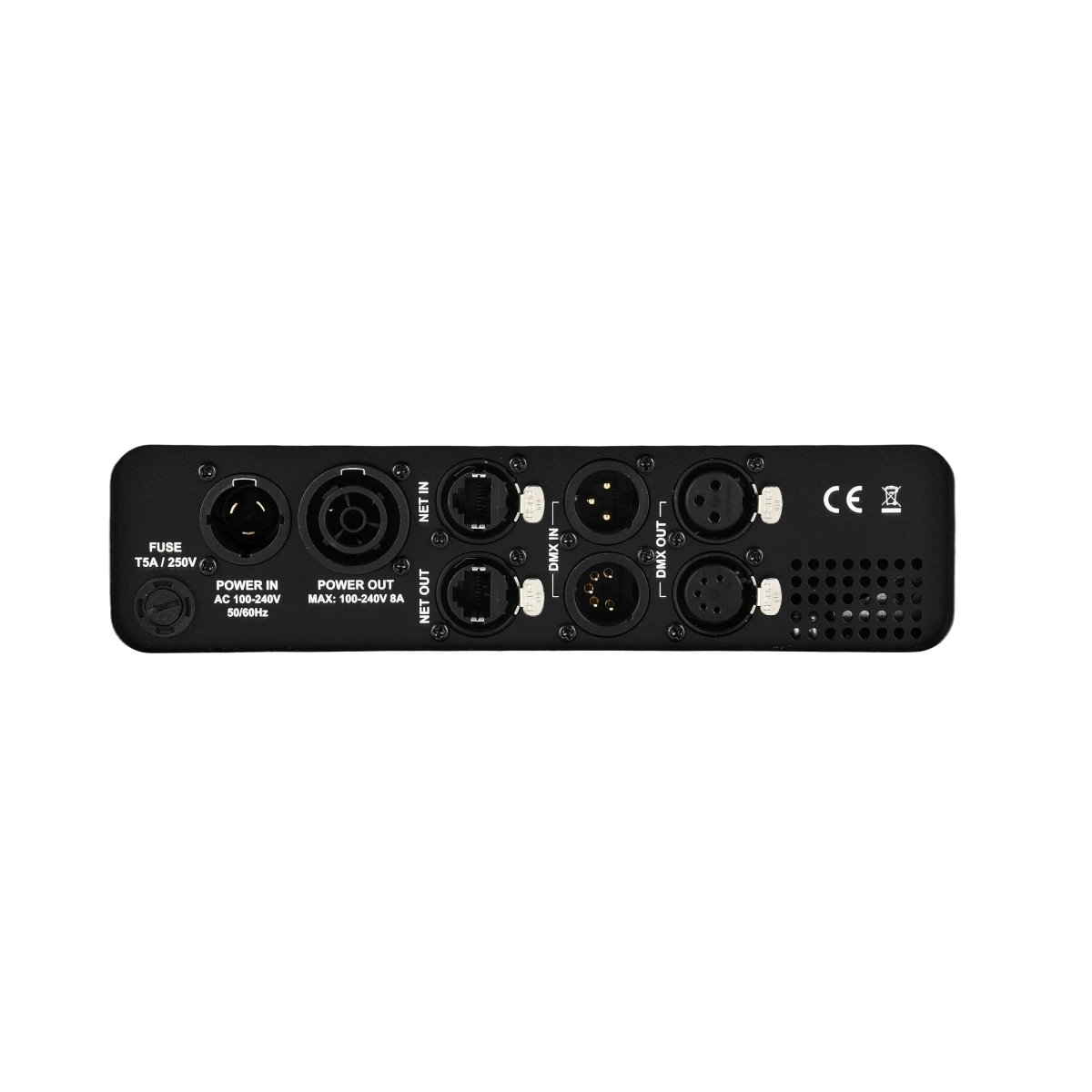 - Built-in DMX512, Art-Net, and sACN compatibility with 3-pin and 5-pin XLR and RJ45 connectors support flexible control and easy integration into complex lighting setups.
