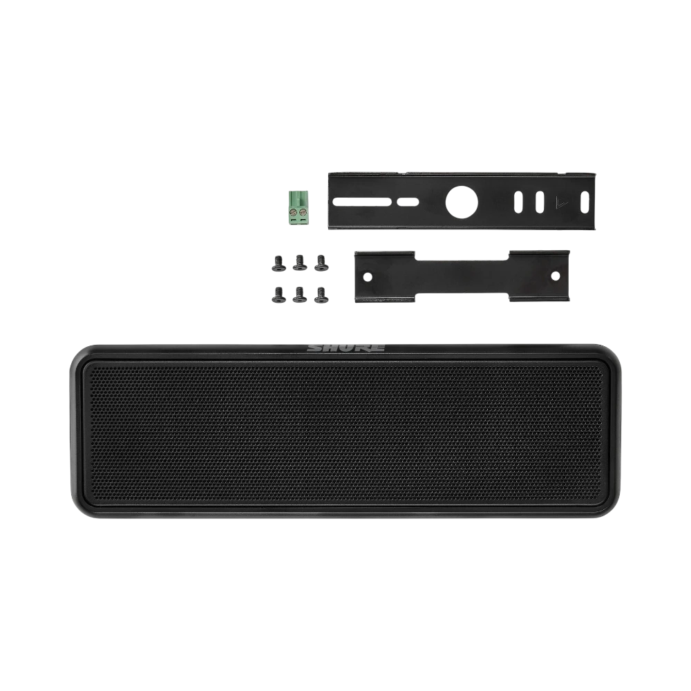 The Shure MXP-3B is a passive wall mount loudspeaker designed to deliver clear speech and program audio in conferencing and collaboration environments. It features a Balanced Mode Radiator driver paired with two passive radiators, producing sound from a single point source to enhance speech clarity. With a frequency response ranging from 120 Hz to 20 kHz and a peak power handling of 10 watts at 4 ohms, this speaker ensures consistent and balanced audio coverage across small to medium-sized rooms.